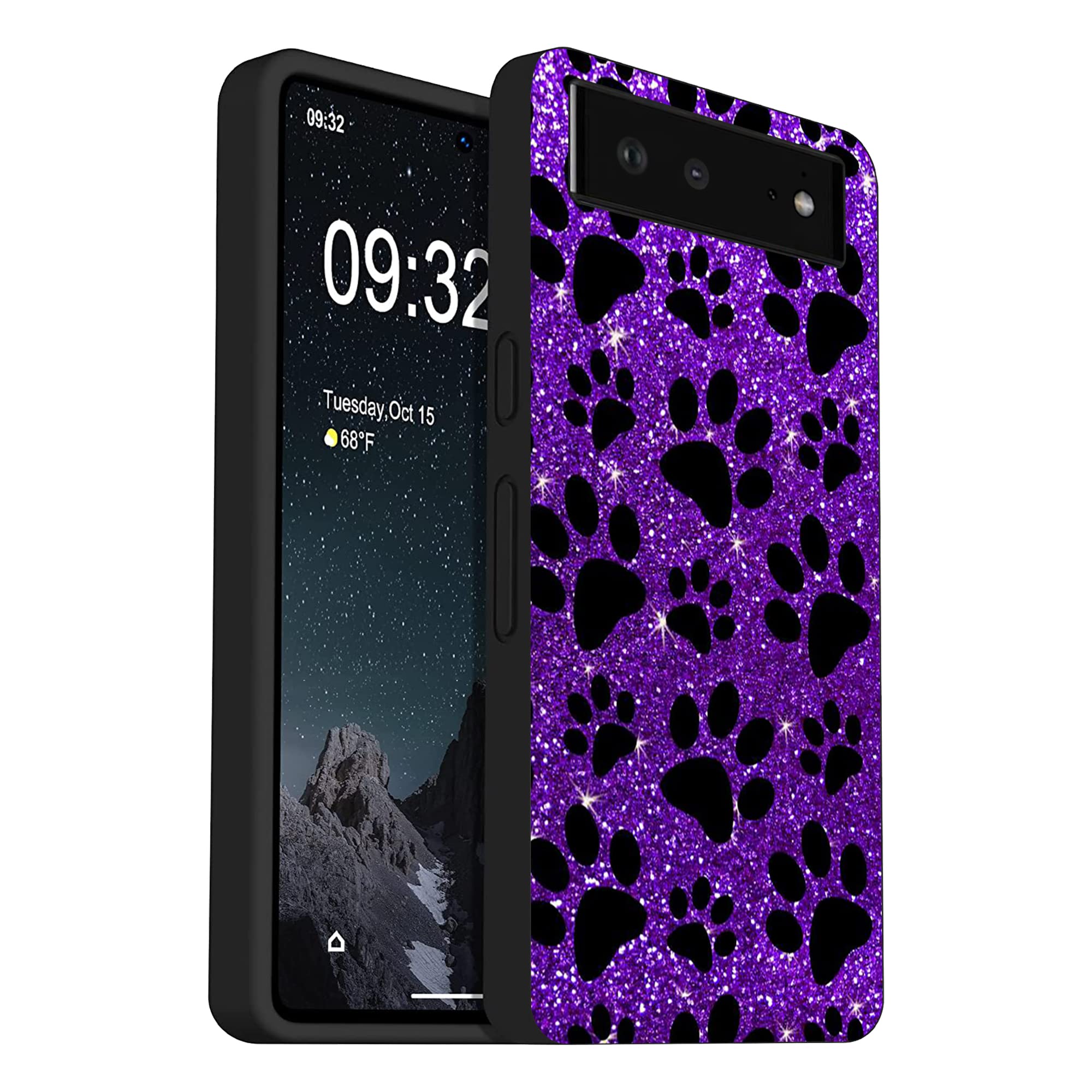 Compatible With Google Pixel 7 Case, Bling Purple Black Dog Paw Slim Fit Soft Tpu Shockproof Protective Cover Case Gift For Wome