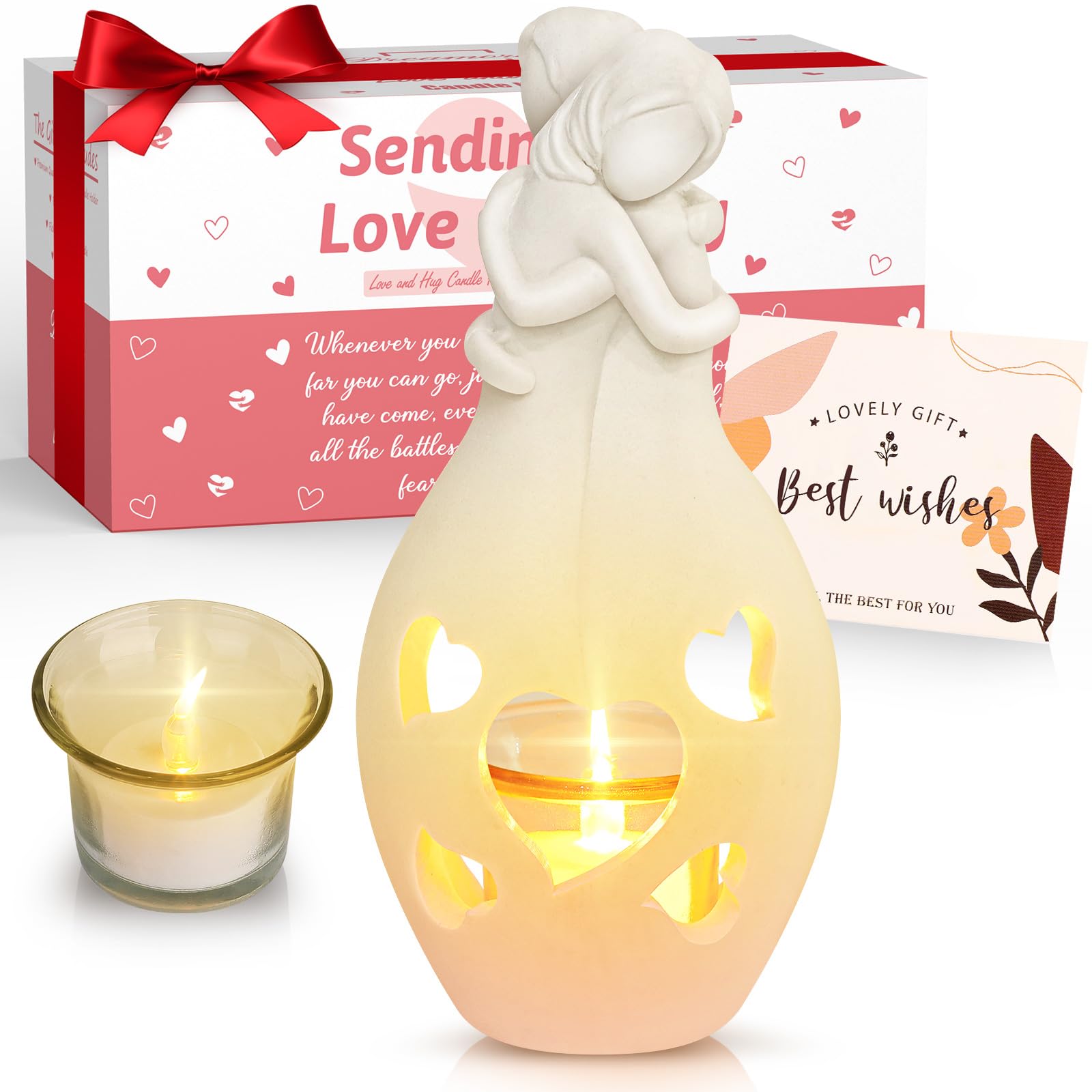 Dreamorie Encouragement Hug Statue Gifts For Women, Polyresin Flameless Led Candle Holder Lamp Inspirational, Sending Hugs Cheer