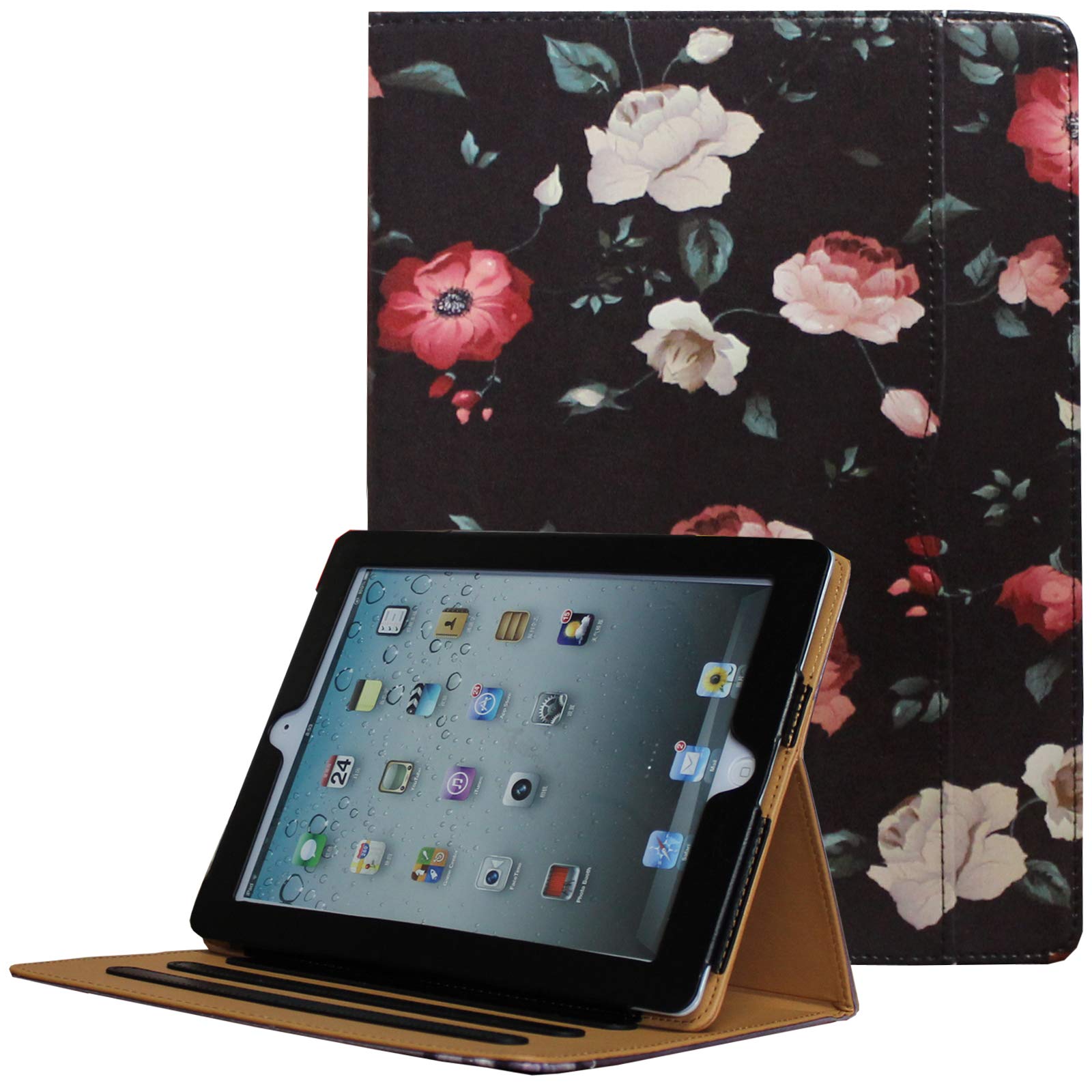 For Ipad 9.7 6Th/5Th Generation 2018/2017, Ipad Air/Air 2 Case, Jytrend Multi Angle Viewing Stand Folio Smart Cover With Pocket For A1893 A1954 A1822 A1823 A1474 A1475 A1476 A1566 A1567 (Flower/Black)