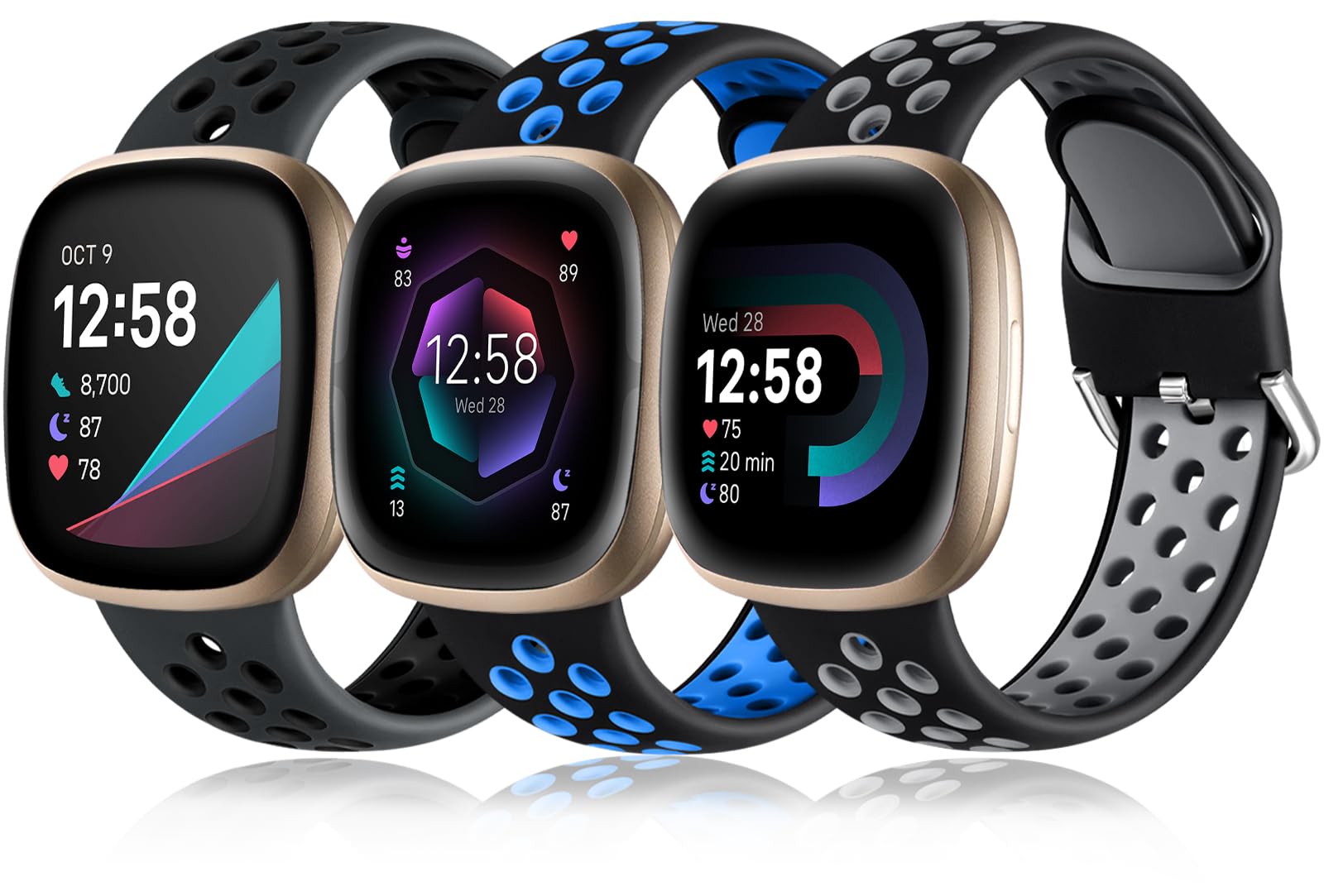 Perfectly Fit Any Occation:Getino For Fitbit Versa 34 Sport Bands And Sense 12 Sport Bands, Keep Your Wrist Comfortable In Every Case, Such As Parties, Working, Travel, Even High Intensity Workout Sports, Like Run, Swim, Ride, Climb, Hike, Cycle, Etcfantastic Design:Getino For Fitbit Versa 34 Band And Sense 12 Band Have Stylish Double-Color & Multi-Pore Design, Dress Up Your Watch Let You Look More Fantastic And Deffirent From Others, Elevate Your Taste At Every Occasion, Bands Combines Fashion With Sport, Personalize Yourself And Highlight Your Fashionpremium Materialthese Sense 12 Watch Bands And Versa 34 Watch Bands For Women Men Are Made Of Premium Custom-Made Silicone, Waterproof And Skin-Friendly, Which Can Prevent Skin From Irritation And Rash, Allowing Sweat To Escape, Drying Fast And Easy To Clean -- A Great Alternative To Traditional Bands For Exercisemultiple Colors:Enjoy 3 Fashionable Straps In One Pack, Each Color Gives You A Different Wearing Experience Matched With Your Mood And Your Different Styles Outfit In Daily Life So Fatastic, Make It Can Be A Nice Gift For Birthday, Anniversary, Christmas, Mothers Day, Fathers Day, Thanksgiving Day, Valentines Day And So Ongetino For Fitbit Versa 34 Accessories And Sense 12 Accessories Size Option:Small Size For 55-72 (140-182Mm) Wristlarge Size For 66-83 (168-210Mm) Wristand The Air Holes Design Make Bands Could Be Adjustable As You Wish To Fit Your Wrist Perfectlywhat You Will Get:3 Pack Getino Bands For Fitbit Versa 34 Smartwatch And Fitbit Sense 12 Smart Watchno Watch Included