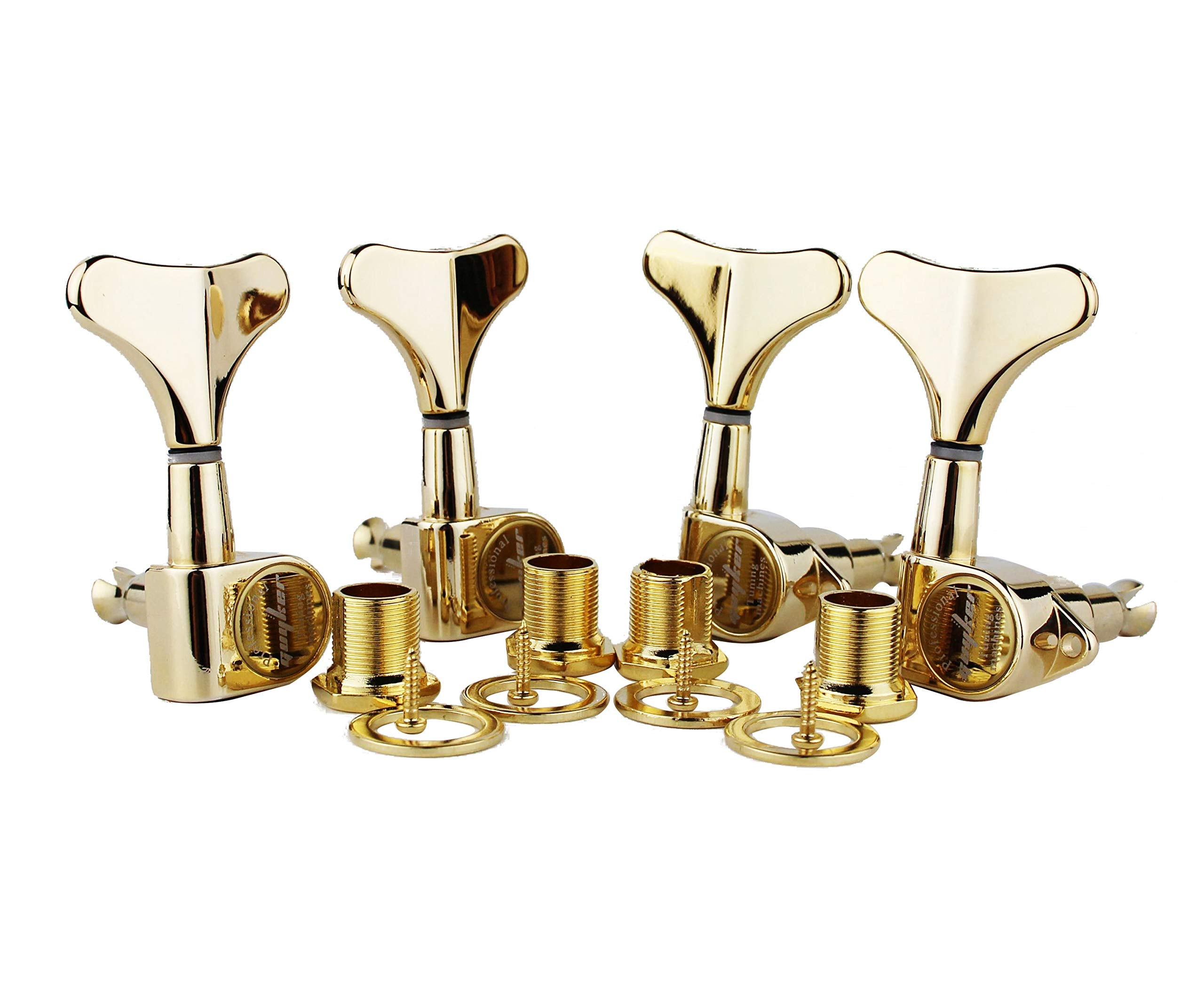 Precision 17:1 Gear Ratio Enclosed Guyker Bass Guitar Tuners Fit For Jazz Bass Or Ibanez Style Electric Bass Guitara Feature: - Gear Ratio - 1:17, Designed To Fit Modern 137Mm Headstock Holes - Comfortable And Easy For Adjustment Of String Tension - Quality Sealed Bass Machine Heads With Heavy-Duty Internal Gear - Replacementupgrade Parts For Electric Or Acoustic Bass Or Precision Instruments - Smooth And Shiny, Wear-Resistant, Anti-Corrosion, And Dust-Proof, Quick And Accurate Tuning - Exquisite Appearance With Perfect Workmanship And High-Tech Finish - Provides Finer Tuning And Greater Stability - Complete With Color Matched Threaded Bushings, Washers And Screws Specifications: - Ratio: Gear Ratio - 1:17 - Style No: Gk150 - 3 Color Available: Chrome, Gold, Black Package Includes: - Gk150 Bass Tuners Set (4R, 4L, 2R2L Or 3R2L For Choose) - Nut, Ferrule, Screws Included