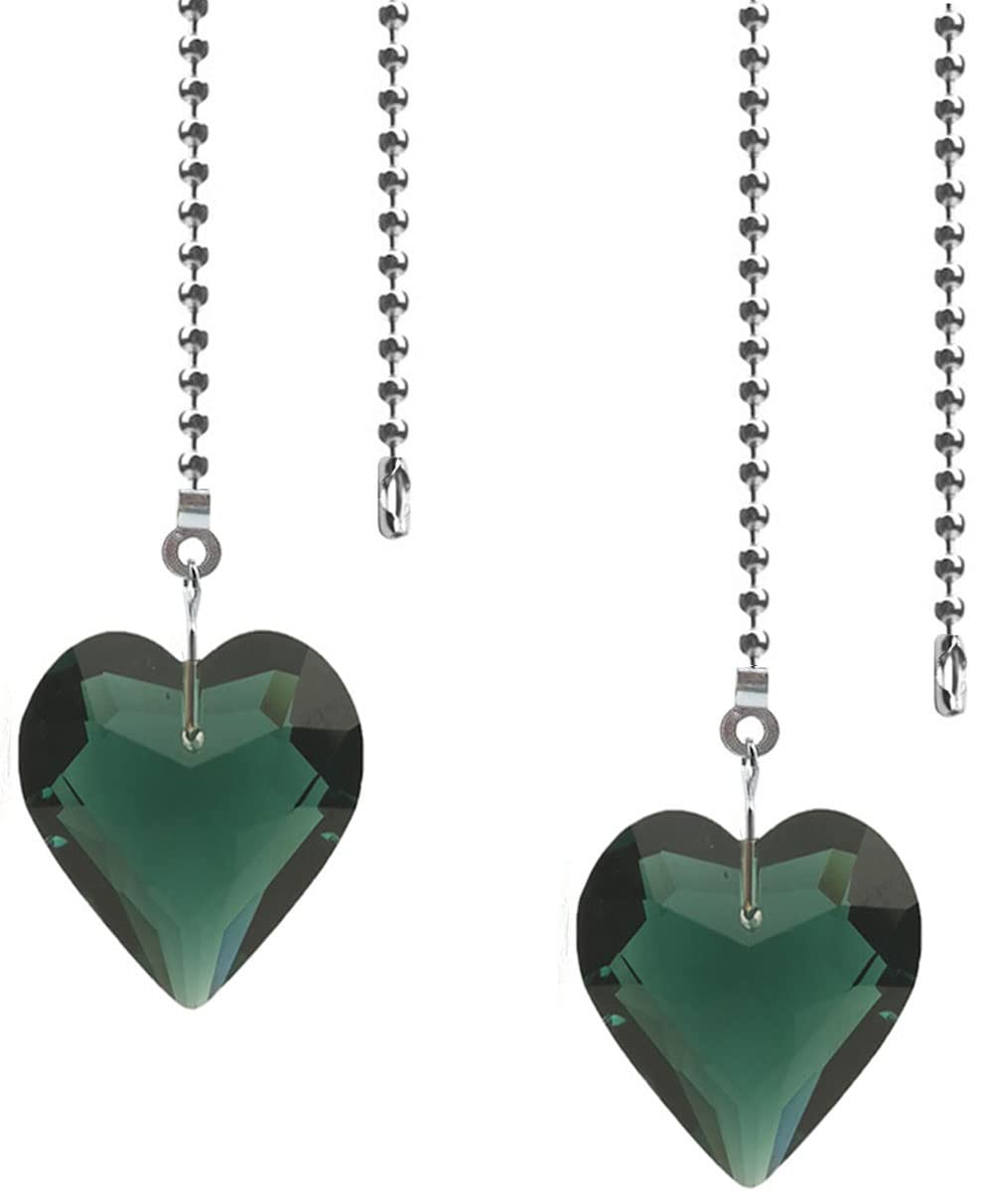 Hyamass 2Pcs Crystal Heart Prisms Pendant Ceiling Fan Pull Chain Extender With Ball Chain Connector (Emerald)