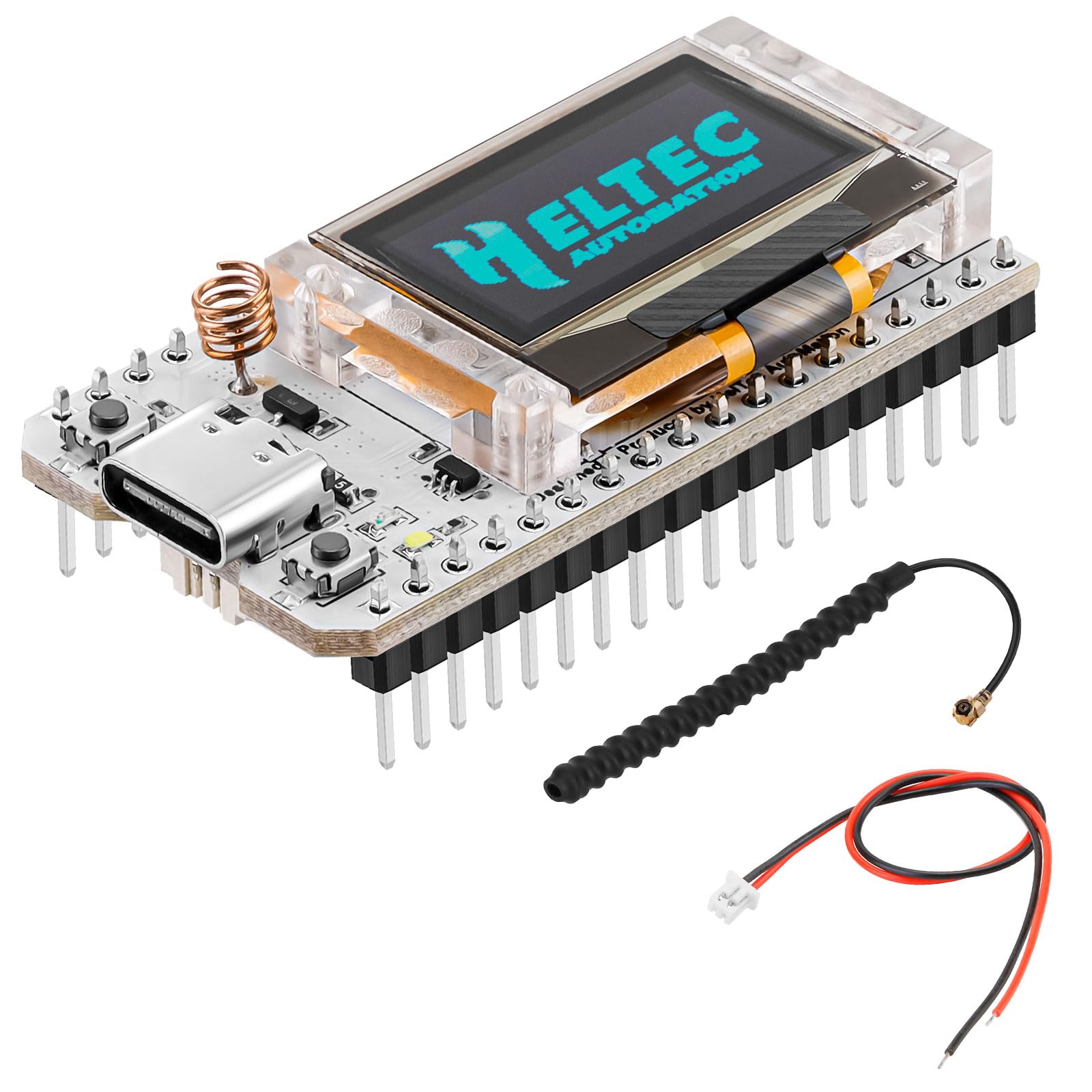 Wifi Lora 32 (V3) Is A Classic Iot Development Board. It Is The Best Option For Smart Cities, Farms, Homes, Industrial Control, House Security, Wireless Meter Reading And Iot Developers Features: 1. Microprocessor: Esp32-S3Fn8 (Frequency Up To 240 Mhz) 2. Sx1262 Lora Node Chip 3. With Good Rf Circuit Design And Low-Power Design 4. Type-C Usb Interface With A Complete Voltage Regulator, Esd Protection, Short Circuit Protection, Rf Shielding And Other Protection Measures 5. Onboard Sh1.25-2 Battery Interface, Integrated Lithium Battery Management System 6. Integrated Wifi, Lora, Bluetooth Three Network Connections, Onboard Wi-Fi, Bluetooth Dedicated 2.4Ghz Metal Spring Antenna, Reserved Ipex (U.Fl) Interface For Lora Use 7. Onboard 0.96-Inch 128*64 Dot Matrix Oled Display Can Be Used To Display Debugging Information, Battery Power And Other Information 8. Integrated Cp2102 Usb To Serial Port Chip, Convenient For Program Downloading And Debugging Information Printing 9. Support The Arduino Development Environment 10. We Provide Esp32 + Lorawan Protocol Arduino Library, This Is A Standard Lorawan Protocol That Can Communicate With Any Lora Gateway Running The Lorawan Protocol Parameter: Max. Tx Power: 21 1 Dbm Max. Receiving Sensitivity: -139 Dbm Wi-Fi: 802.11 B/G/N, Up To 150Mbps Bluetooth: Bluetooth Le, Bluetooth 5, Bluetooth Mesh Hardware Resource: 7*Adc1 + 2*Adc2; 7*Touch; 3*Uart; 2*I2C; 2*Spi; Etc. Memory: 384Kb Rom; 512Kb Sram; 16Kb Rtc Sram; 8Mb Sip Flash Interface: Type-C Usb; 2*1.25 Lithium Battery Interface; Lora Ant(Ipex1.0); 2*18*2.54 Header Pin Battery: 3.7V Lithium Battery Power Supply And Charging Operating Temperature: -20 ~ 70 ? Dimensions: 50.2 * 25.5* 10.2 Mm Package Content: 1 * Wifi Lora 32 1 * Power Cord 2 * Pin Header