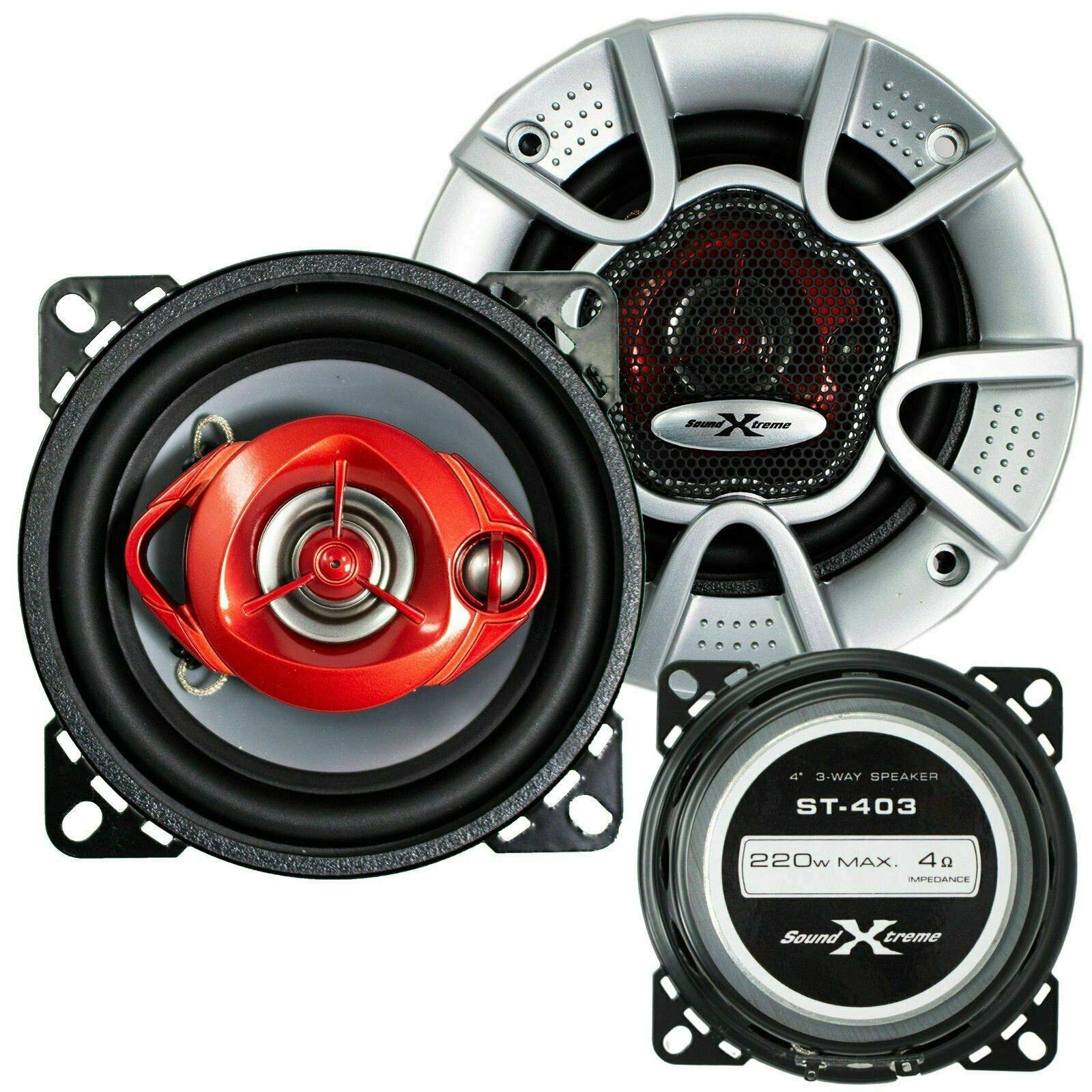 Pair Of Soundxtreme 4'' In 3 Way 220 Watts Coaxial Car Speakers Cea Rated (2 Speakers)