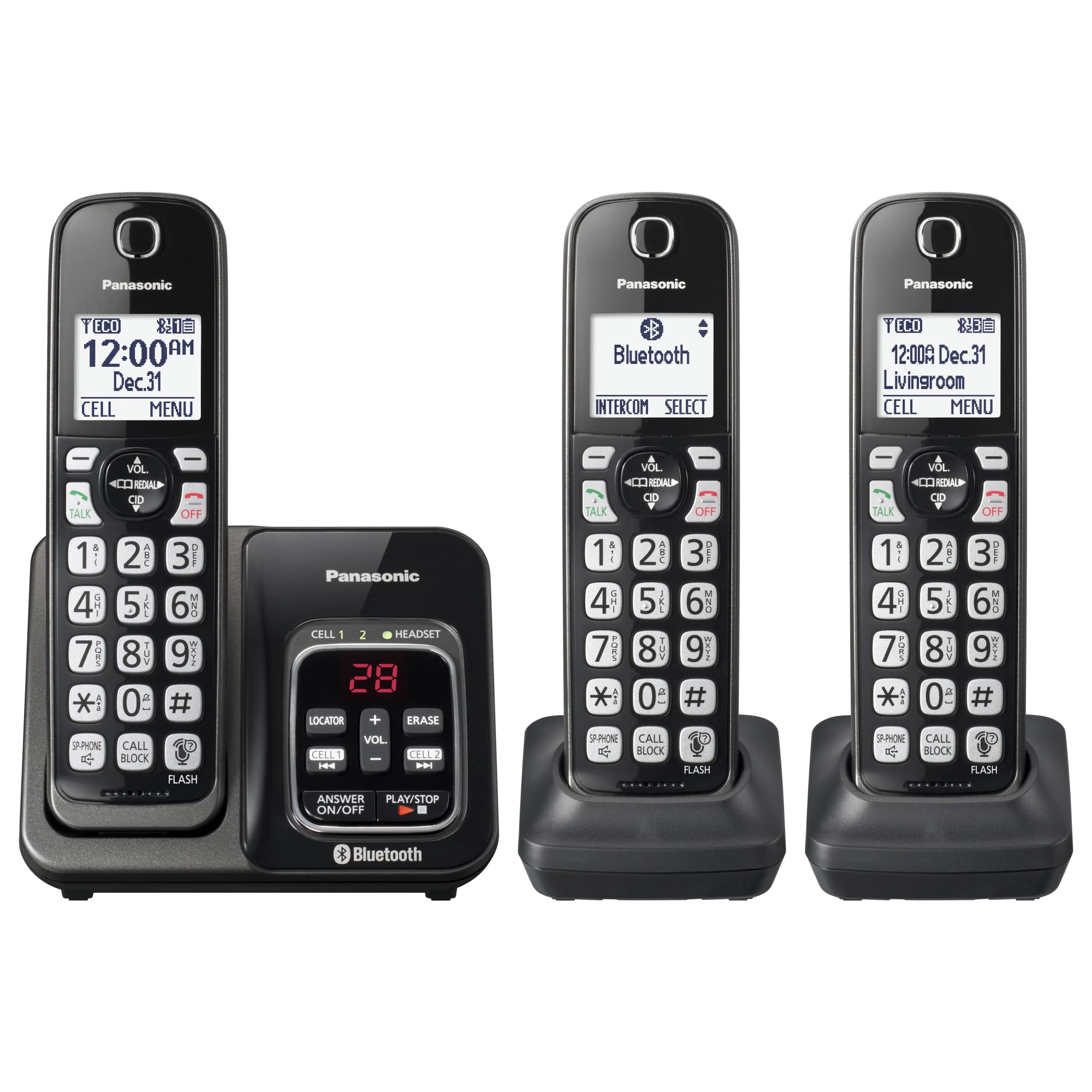 Panasonic Expandable Cordless Phone System With Link2Cell Bluetooth, Voice Assistant, Answering Machine And Call Blocking 3 Co