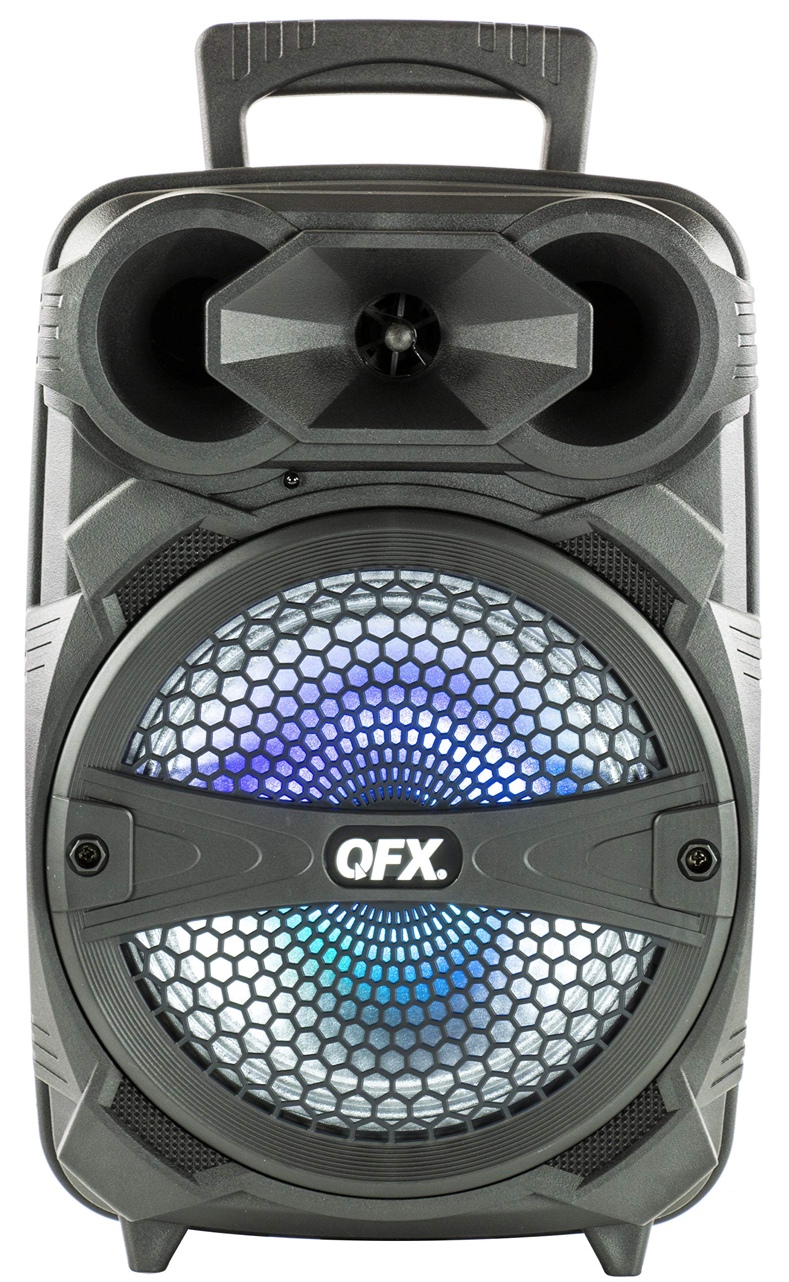 Qfx Pbx-81 Portable Bluetooth Party Sound System Provides Durability, Flexibility, And Excellent Audio Performance With Exceptional Range - Perfect For Home Entertainment, Indoor/Outdoor Activities, And Events. Features A Powerful 8' Woofer, Fm Radio, Usb/Tf, Microphone Port, Remote Control, And Built-In Bluetooth Receiver That Allows You To Wirelessly Connect To Your Ipad, Iphone, Ipod, Smartphone, And More. Includes Light Effects, Wired Microphone, Convenient Rechargeable Battery, And 100-240V Ac Ul/Cul Wall Adapter. Convenient Handle And Feet For Easy Movement And Stability. Built-In 36Mm Pole Socket On Bottom Works With Available Tripod Stands (Not Included). Comes In An Attractive Black Finish. Measures 9.65 Inches X 7.36 Inches X 14.69 Inches And Weighs Only 4.3 Pounds. Qfx Leads The Market In Lifestyle Consumer Electronics By Delivering Innovative Product Designs And Exceptional Performance To Value-Conscious Consumers Without Compromise. With Three Decades At The Frontline Of Quality Electronics, Qfx Stands Firm In Its Commitment To Offer The Latest In Bluetooth Audio, Tailgating And Dj Speaker Systems, Led Tvs, And Many Other Prosumer Multimedia Solutions, Affording Budget-Focused Families, Businesses, And Everyone In Between, Industry-Leader Quality Without Breaking The Bank. Qfx Has The Gear You Need At The Price You Want!