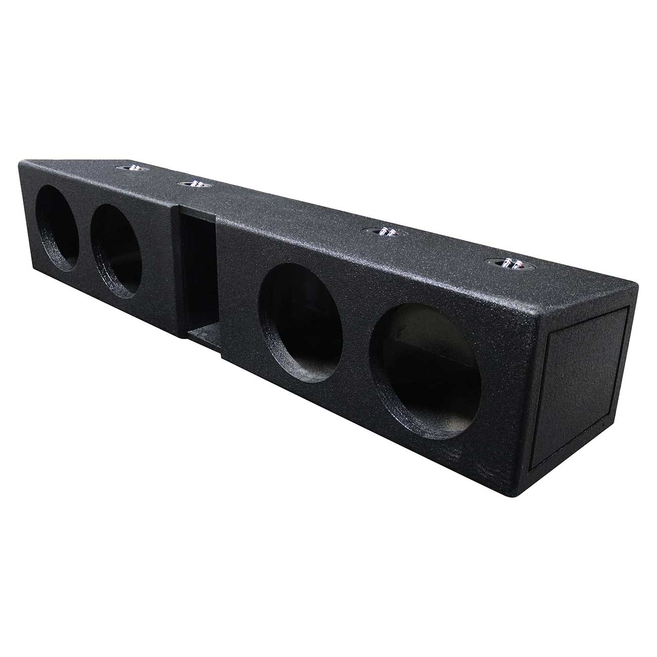 Qbomb Black Sprayed On Bedliner Coating Quad Woofer Enclosure 19 23 Ram Crew Cab Under Seat Up-Fire 9 4-1/4 Front Firing Shared Slot Port 5/8 Mdf Construction 1-1/4 Double Thick Face 9-1/2 1-3/4 Side Slot Port Spring Loaded Push Pin Terminals Mounting Depth: 6.75 Tuning: 35Hz Volume (Sub): 1.10 Cu. Ft. Per Sub Dimensions: (W D H) 52.25 11.5 19.25