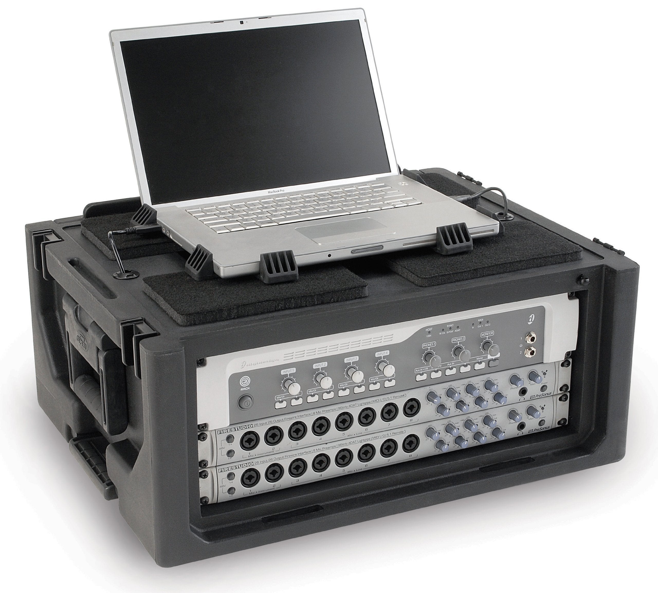 Skb Cases 1Skb19-Rsf4U Roto-Molded 4U Studio Flyer Rack Case, Rack Space For Recording Gear, 21.5'' X 15.5'' Surface For Laptops Or Lcd Screens, Rotomolded, 8 Adjustable Cleats, Four In-Line Wheelsthe 4U Studio Flyer Is The Perfect Solution For Housing Your Portable Recording Studio. With 4U Of Rack Space For Recording Gear And A 21.5'' X 15.5'' Surface For Laptops Or Lcd Screens, The 4U Studio Flyer Offers The Best Solution For Protecting Valuable Gear On The Road. Both The Thick Convoluted Foam Padding In The Lid And The Innovative Cleat System Secure The Laptop During Transport. Cable Pass Through Allows The Laptop And Rack Gear To Remain Cabled Up At All Times. Rotomolded For Durability, The Case Features 8 Adjustable Cleats, Four In-Line Wheels, A Pull Out Handle And Two Cushioned Rubber Over-Molded Carry Handles. The Reinforced Nylon Trigger Release Latching System Includes A Tsa Locking Latch Which Enables The Traveler To Safely Lock The Case And Still Have It Inspected By Airline Securitykey Features 4U Rack And Laptop Combo Case Nylon Reinforced Fiberglass Trigger Release Latches, Recognized And Accepted Tsa Lock Two Stage Retractable Handle And Four Easy Glide Wheels Cable Pass Through From Laptop To Rack Removable Front And Back Doorspecifications Interior Dimensions(W X H): 19'' X 7'' Exterior Dimensions(D X W X H): 18.7'' X 24.5'' X 13.5'' Carton Dimensions (L X W X D): 25'' X 14'' X 19'' Rack Space Units Total: Four (4) Rack Depth Front Rail To Back Lid: 15.8'' Lid Depth: 2.3'' Shipping Weight: 25 Lb Product Weight: 23.5 Lb