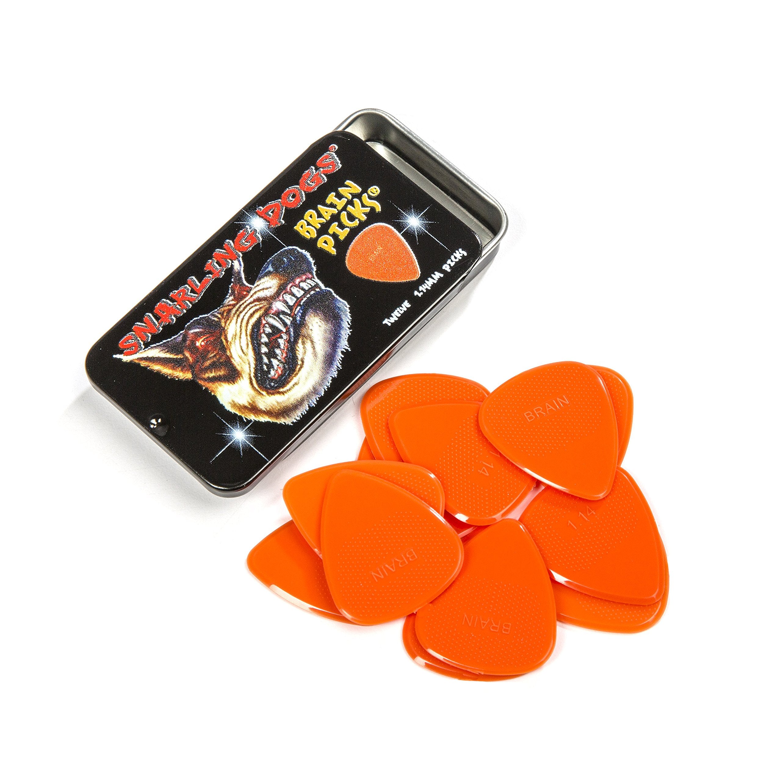 Snarling Dogs Brain Tnsdb351 1.14 Guitar Picks, 12-Piece, Collectible Tin, Orange Nylon, 0 1.14Mm