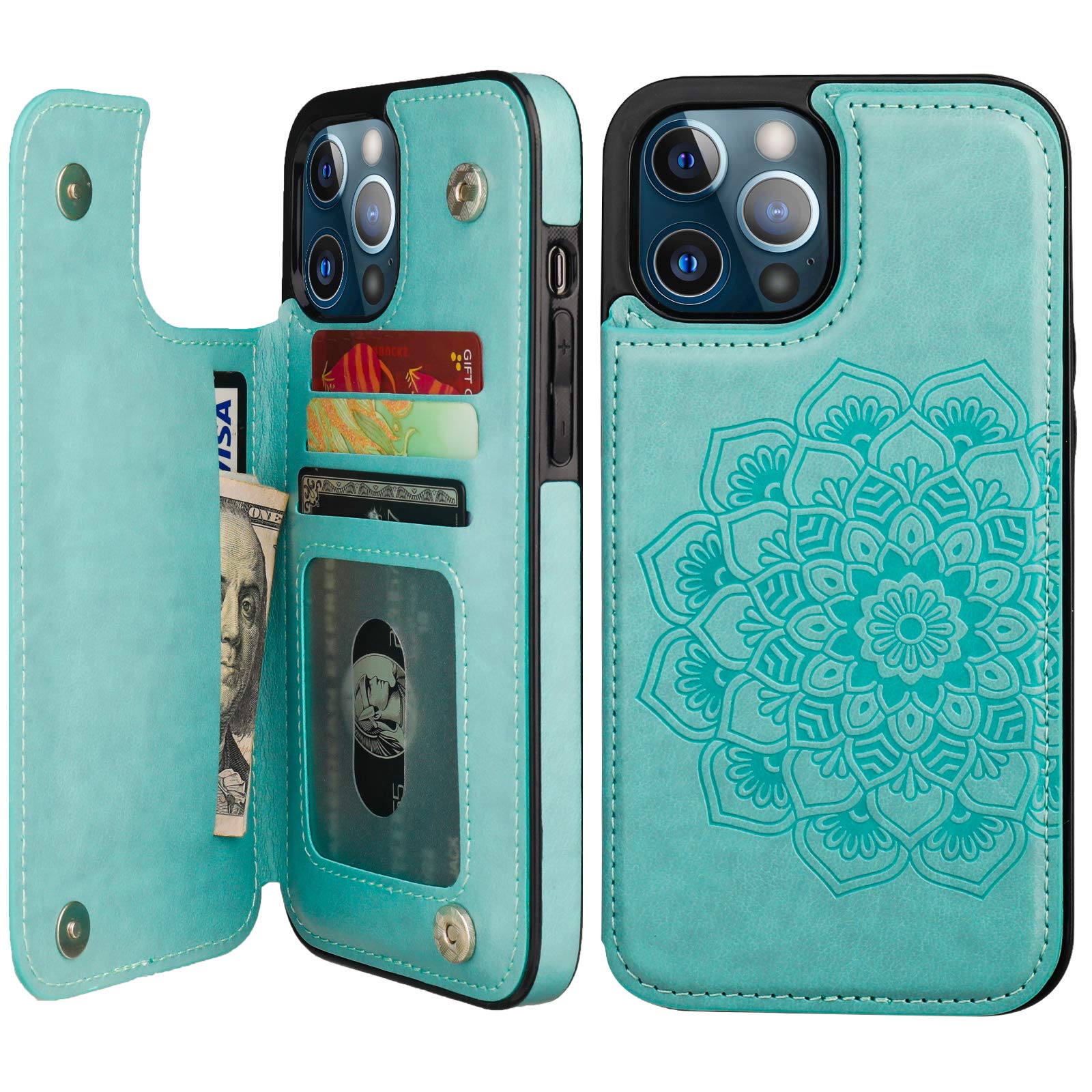 Vaburs Compatible With Iphone 12 Pro Max Case Wallet With Card Holder,Embossed Mandala Patternaflower Pu Leather Double Magnetic Buttons Flip Shockproof Cover 67 Inch(Green)