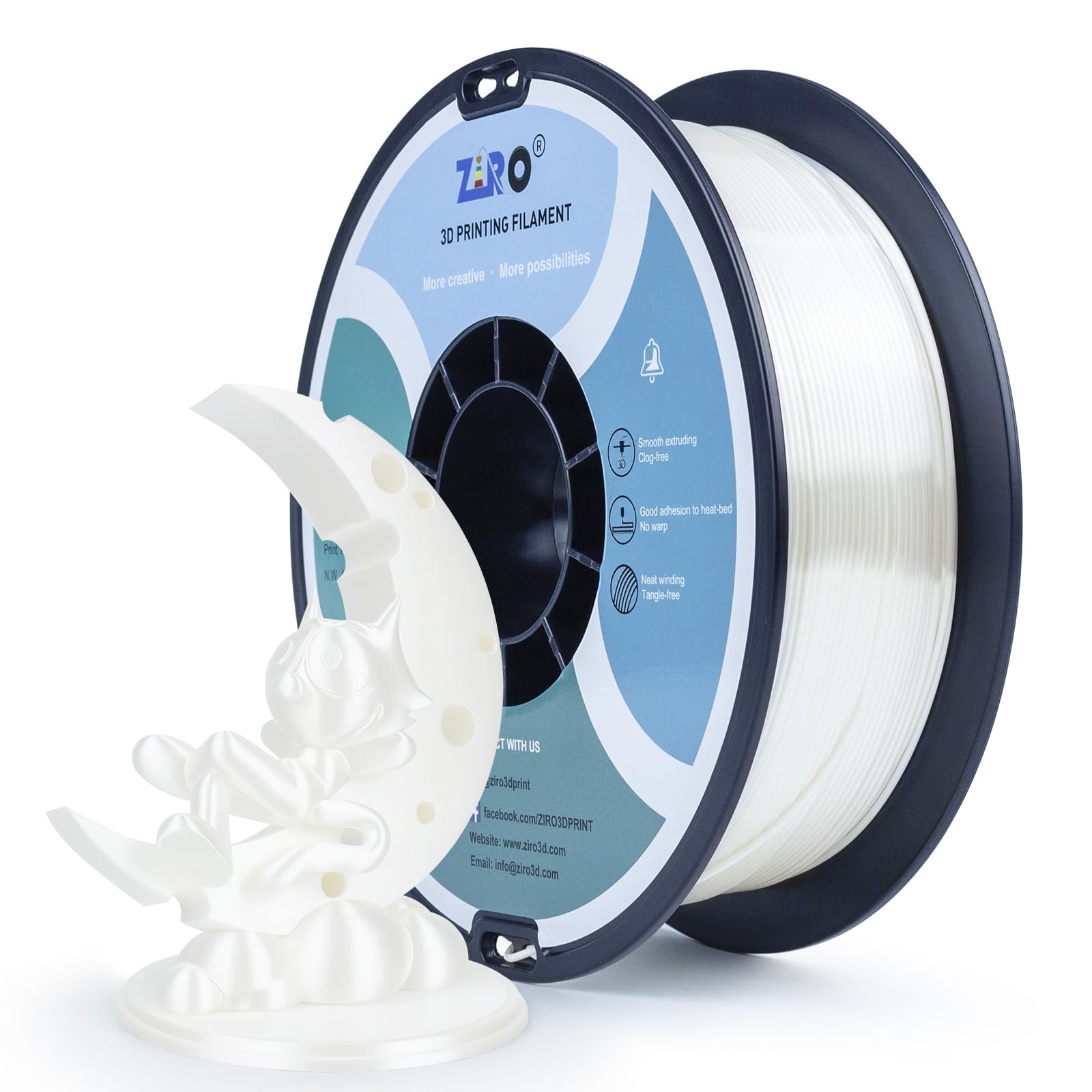 Ziro Silk Pla Filament 1.75Mm, White Shine 3D Printer Filament, Shiny 3D Printing Filament, Dimensional Fit Most 3D Fdm Printers