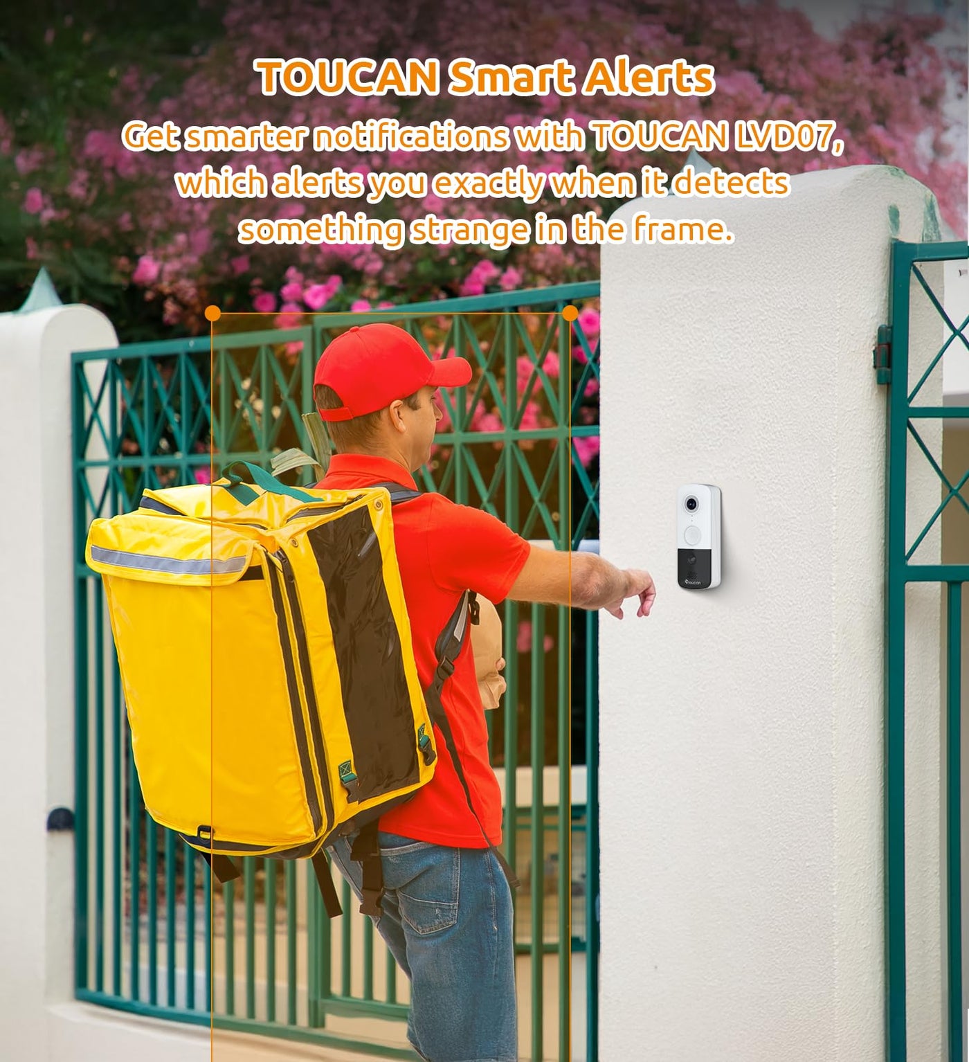 Toucan Video Doorbell, Wireless Video Doorbell With Chime, 2-Way Talk, 2.4Ghz Wifi, Night Vision, Pir Motion Detection, Compatible With Alexa And Google Assistant,Indoor Outdoor Surveillance