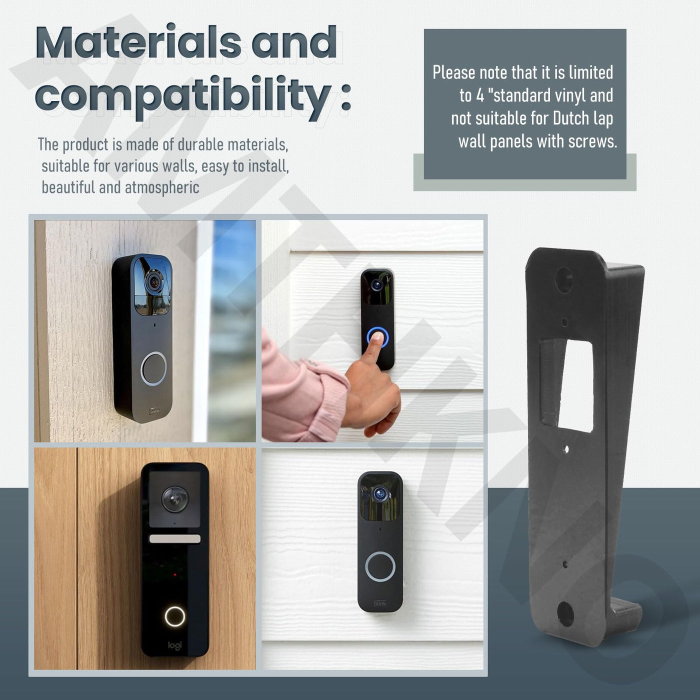 Vinyl Siding Mount/Angle Mount Wedge For Blink Video Doorbell (4'' Standard Vinyl Only, Not For Dutch Lap Siding) W/Screws Bla
