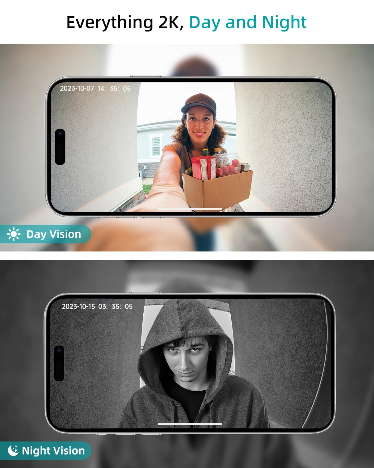 Zumimall 2K Doorbell Camera Wireless, Video Doorbell Wireless With Chime, 2 Way Audio, Voice Changer, 30S Voice Message, Anti-Theft, Ai Detection, 2.4Ghz Wifi, Battery Powered, Work With Alexa, White