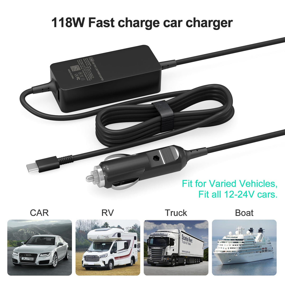 100W Car Charger, Laptop Car Charger Compatible With Dell Latitude/Dell Precision/Dell Xps, Macbook Pro/Air, Hp Spectre/Eliteboo