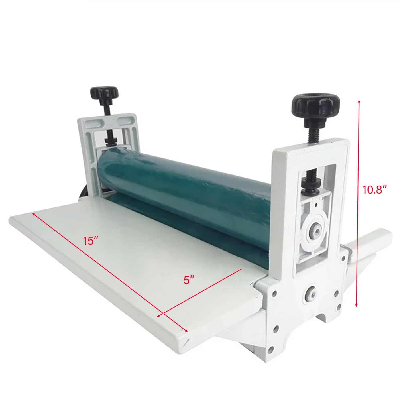 Maximum Laminating Width:14' (360Mm) Manual, No Electricity Required | Maximum Laminating Thickness:0.4' (10Mm) Soft Rubber Rollers, Smooth Surface Make Film Get Through Without Wrinkle And Departure | Roller Diameter:2.68' (68Mm) Adjustable Roller Position Suitable For Various Material Thickness | High Quality/High Precision Cold Laminator | 2 Position Handling Board To Control The Laminating Process