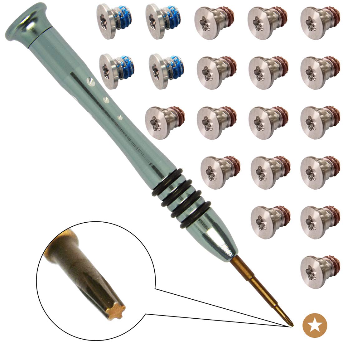 Q: What tools are included in the package with the screws?A: The package includes 2 sets of 20 screws and 1 Pentalobe 5 screwdriver, which is specifically designed for repairing MacBook Pro models.
