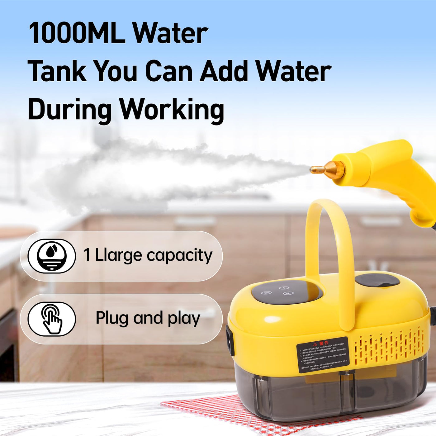 Q: What is the capacity of the water tank, and how long can I clean with it?A: The steam cleaner features a large capacity water tank of 1L (1000ml), allowing for extended cleaning sessions without frequent refills, depending on the cleaning task and steam settings used.
