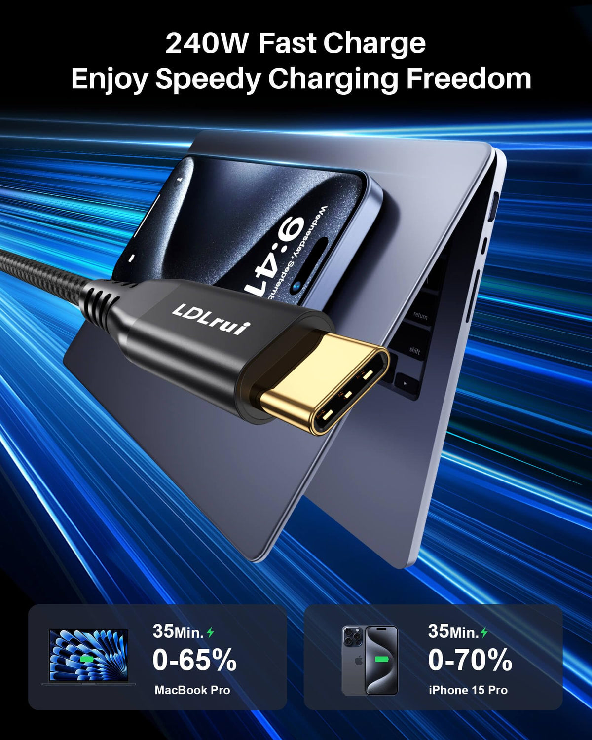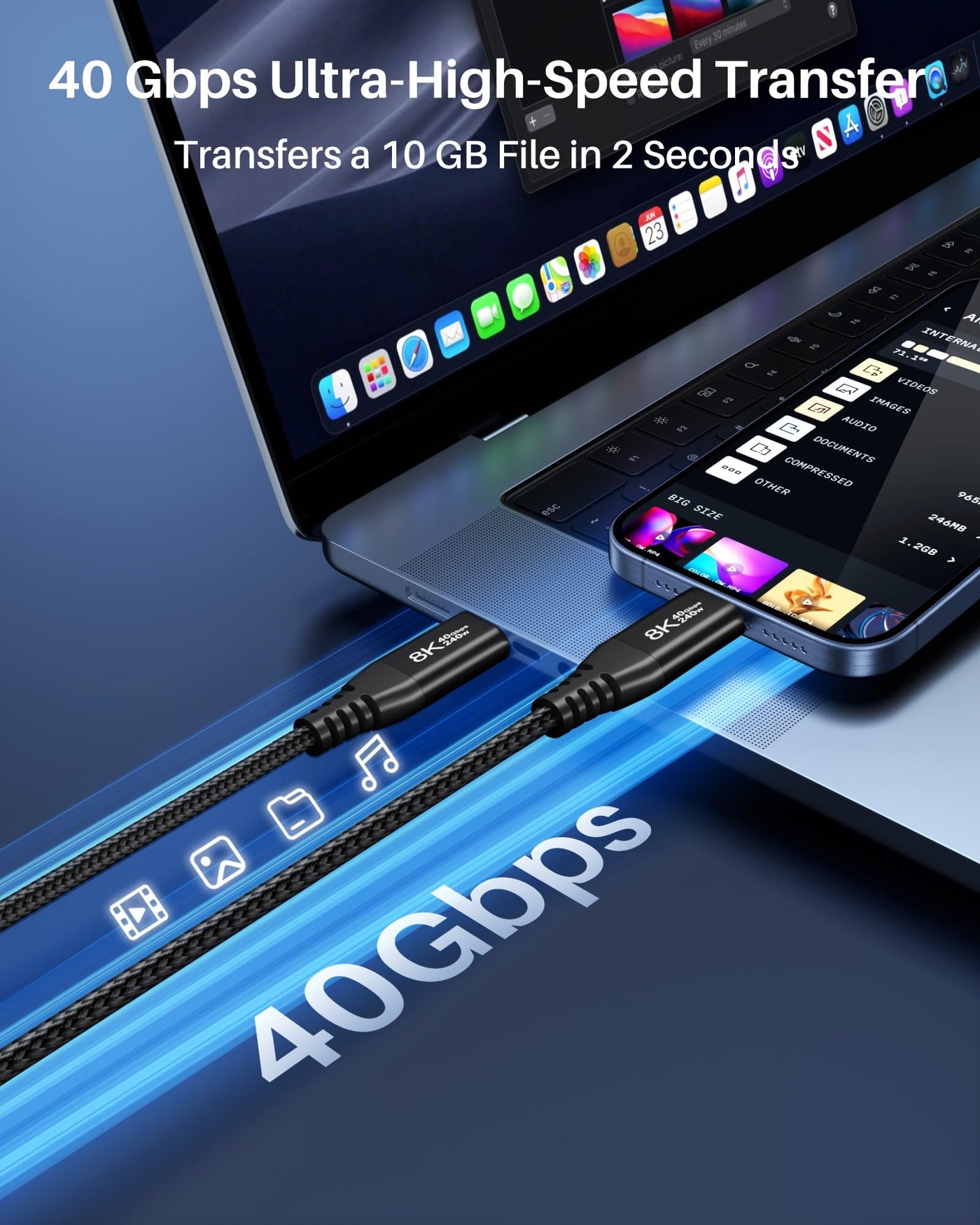3Ft Usb C For Thunderbolt 4 Cable, [High Speed, Durable] 40Gbps Data Transfer, 8K@60Hz/4K@120Hz Usb C Monitor Cable, 240W Pd Fast Charging For Macbook Pro, Lenovo, Samsung, Iphone 16, Ssd, Docking
