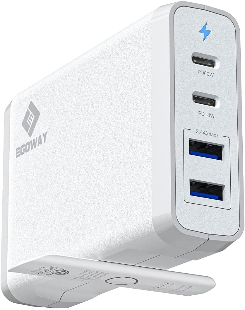 4 Port Usb Charger, Egoway 90W Wall Charger, 60W & 18W Dual Usb C Wall Charger And Dual Usb A Ports 12W, Multi Usb C Charger For Macbook, Phone And More. (White)
