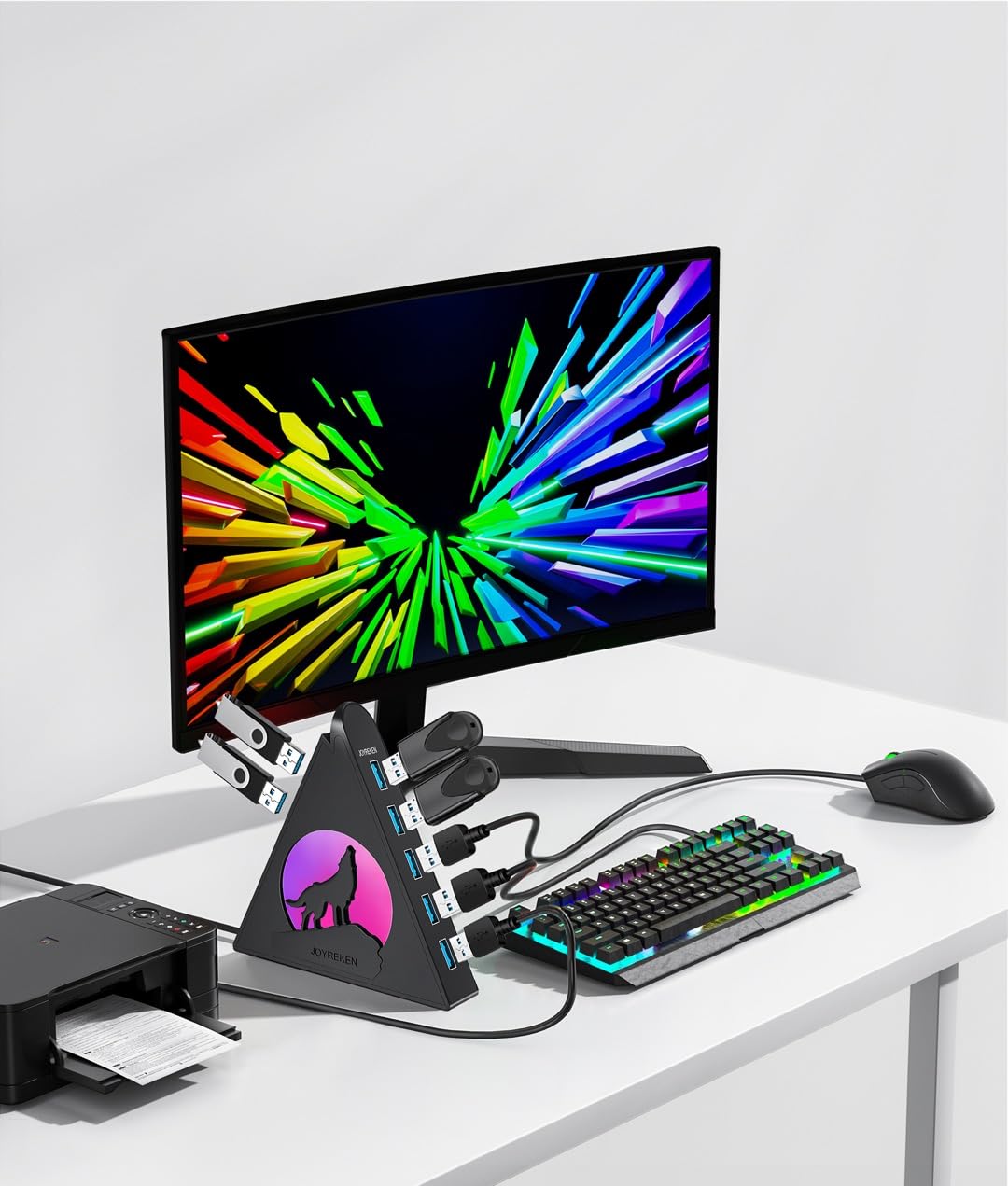 7 Port Usb Hub, Joyreken Usb 3.0 Hub With 2 Ft Long Cable, Vertical Usb Exrension Hub For Laptop, Macbook, Xbox, Ps4/5, Flash Drive, Xps, Pc, Flash Drive, Game Console, Printer, Camera,Keyborad, Mouse