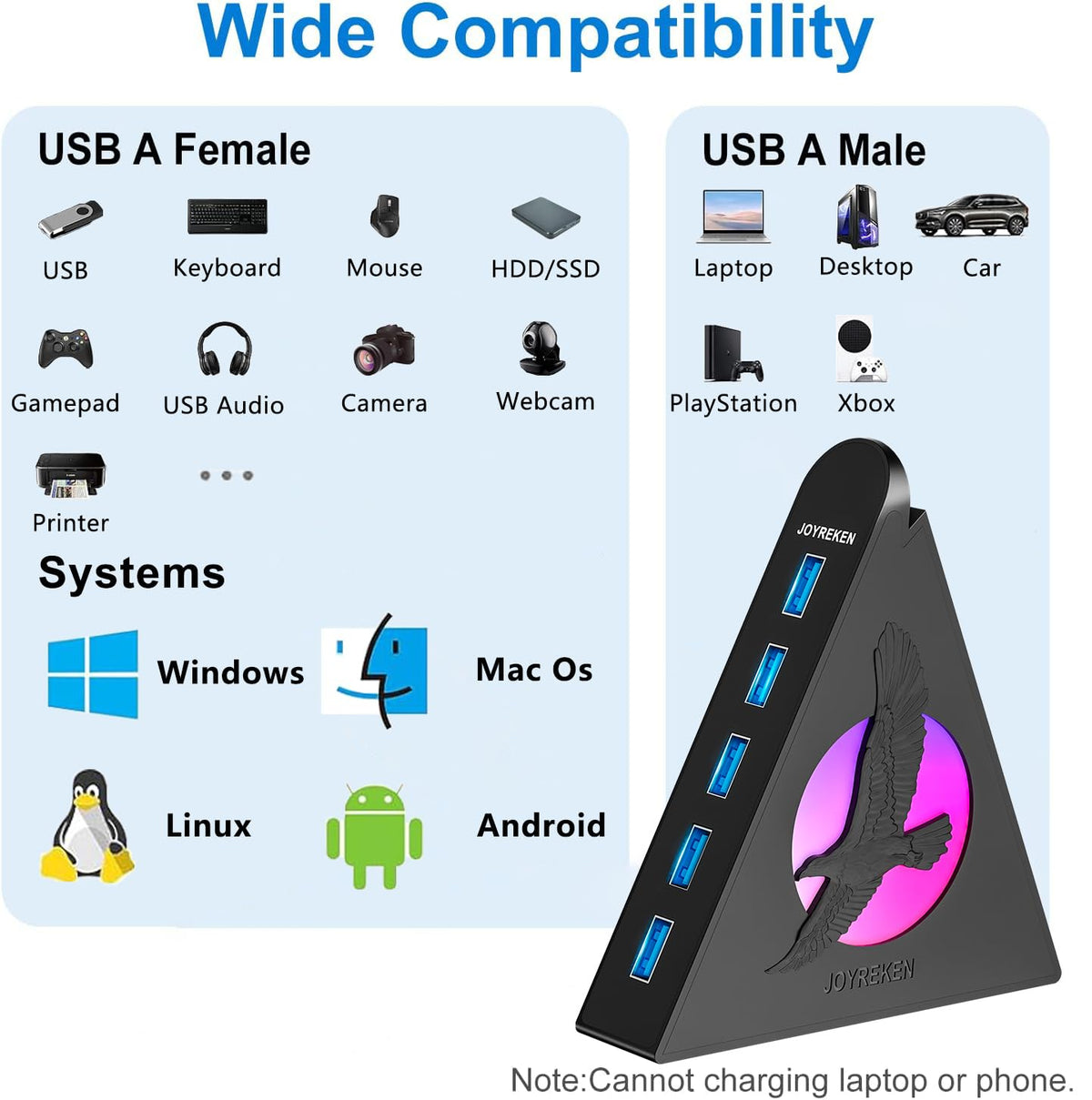 Note: Please Push The Button Once To Turn On/Off The Night Light On The Side. 7 Port Usb Hub: This 7-Port Usb 3.0 Data Hub Can Instantly Expand One Of Your Computer'S Usb Ports Into Seven External Usb 3.0 Data Ports For Keyboard, Mouse, Printer, Flash Drive, Thumb Drive, Hard Drivers And Other Usb Devices, Transforming A Single Usb Port Into A Full Work Station. (This Hub Is Not Designed To Charge Devices.)