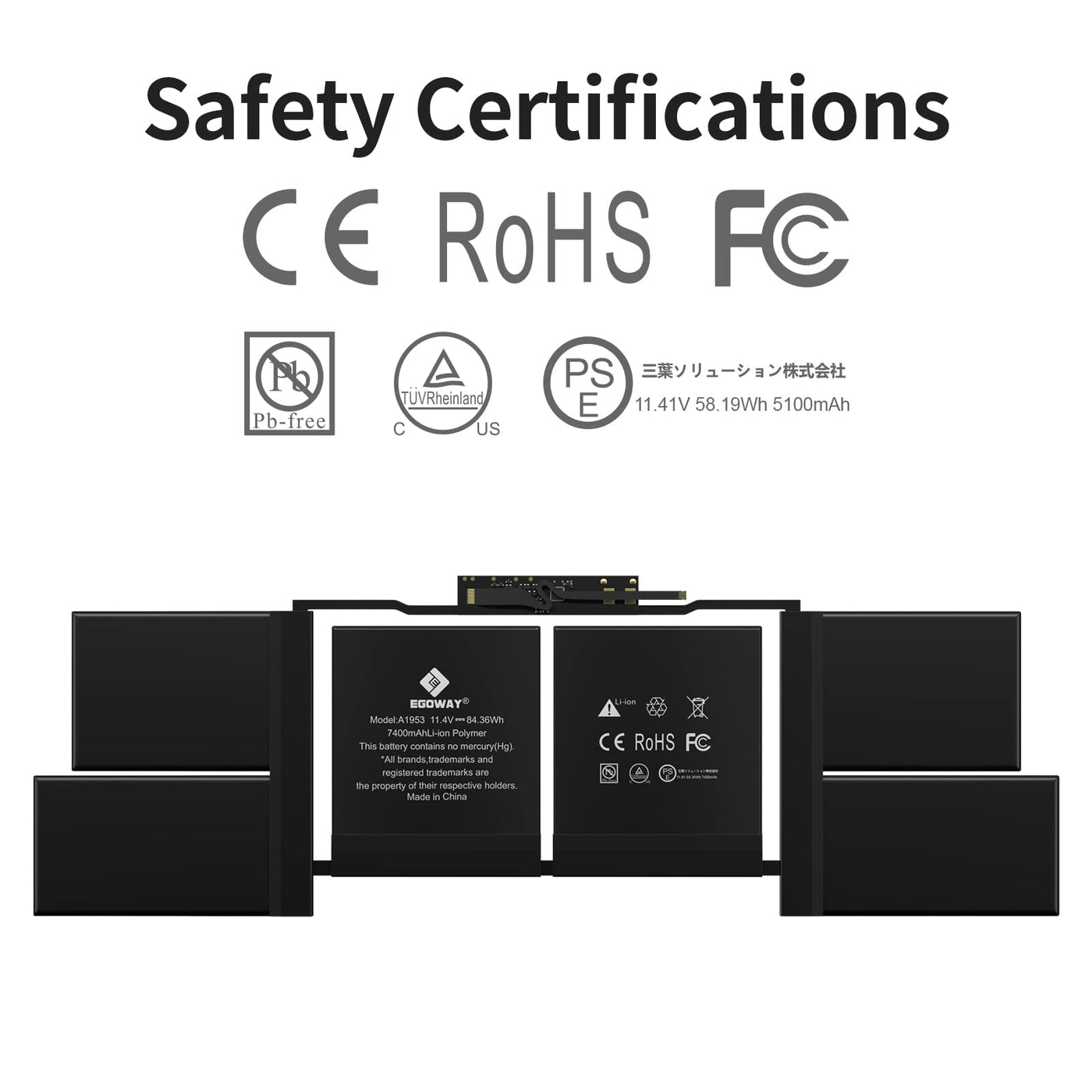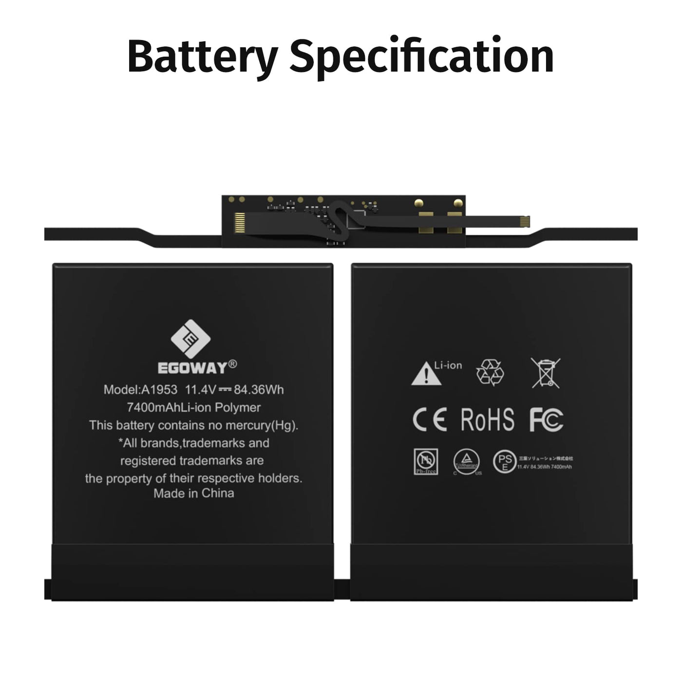 Welcome To E Egoway. We Are A Manufacturer Specializing In Various High-Quality Laptop Batteries And Tablet Batteries. We Emphasizes The Basic Product Concept Of High-Quality, Safety And Reliability. Our Company Has Strict Product Quality Standards, And Each Battery Will Undergo Rigorous Testing Before Sending. We Aim To Provide Each Customer With Valuable Products And Give You A Longer Life Battery. Specification: Battery Type: Li-Ion Polymer Voltage: 11.4V Capacity: 83.6Wh/7336Mah Condition: 100% Brand New Compatible Laptop Models: Macbook Pro 15'' A1990 Mv922B/A Mv922D/A Mv922Ze/A Mv922Fn/A Mv922Hn/A Mv922Ll/A Mv922T/A Mv922Tu/A Mv922X/A Mv922Zp/A Macbook Pro 15'' A1990 Mv902B/A Mv902D/A Mv902Hn/A Mv902Ll/A Mv902N/A Mv902Ze/A Mv902Zp/A Mv902Y/A Mv902Tu/A Mv902X/A Package Included: 1 X A1990 Battery 5 X Free Screwdrivers Warm Tips: You Could Check The Back Of Your Macbook Pro To Confirm The Model. Note: The Tools For Repairing Are Included, The Adhesive Tapes Are Pre-Attached.