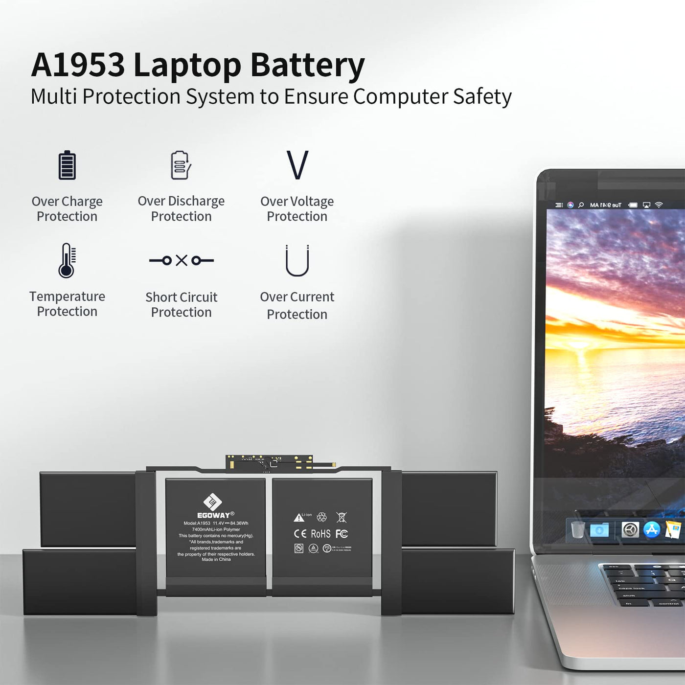A1990 Laptop Battery, Egoway A1953 Replacement For Macbook Pro 15 Inch Touch Bar A1990 (Mid 2018, 2019), Emc 3215 3359