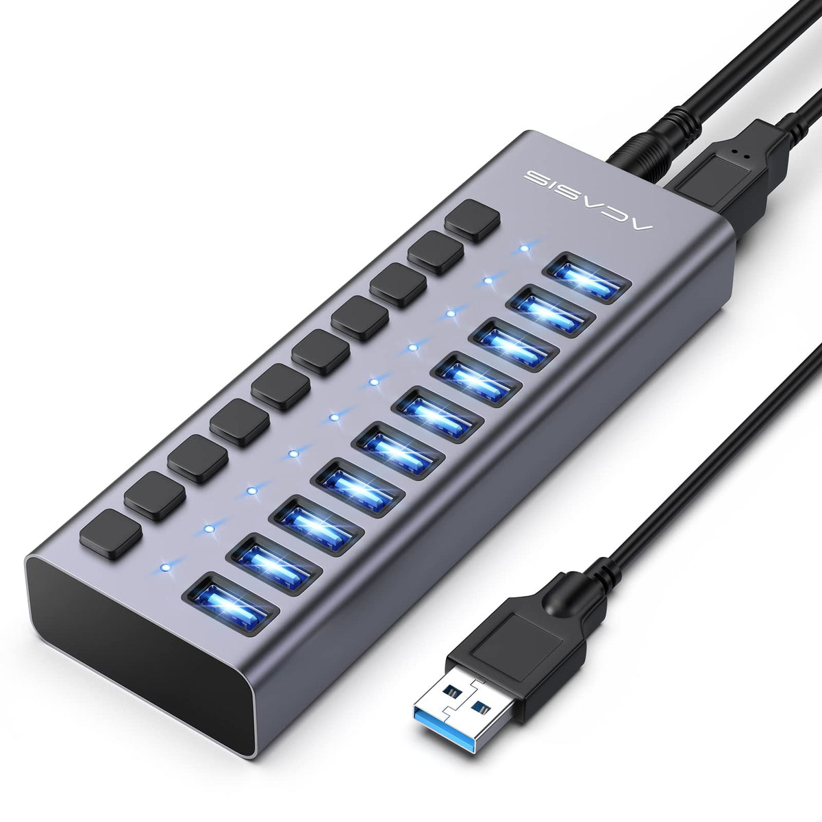 Acasis Powered Usb Hub,10 Ports Usb 3.1 Data Hub, Individual On/Off Switches, 12V4A 48W Power Adapter, Usb Hub 3.1 Splitter Extension For Macbook, Mac Pro/Mini, Imac, Surface Pro Laptop/Pc