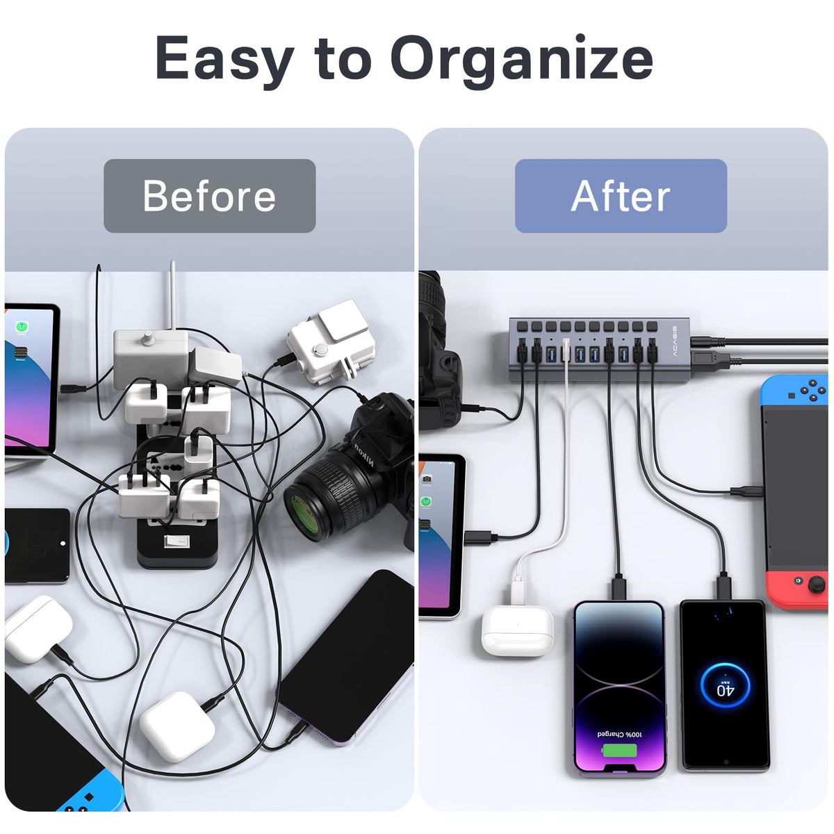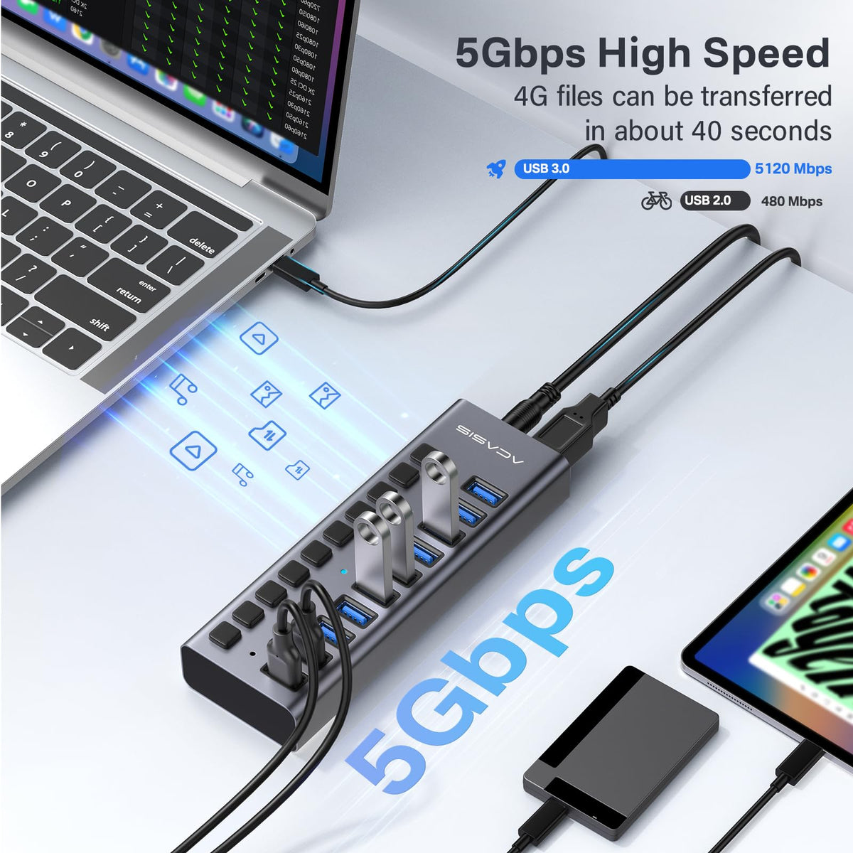 Acasis Powered Usb Hub,10 Ports Usb 3.1 Hub With 10Gbps Data Speed, Individual On/Off Switches, 12V4A 48W Power Adapter, Usb Hub 3.1 Powered For Macbook, Mac Pro/Mini, Surface Pro Laptop/Pc