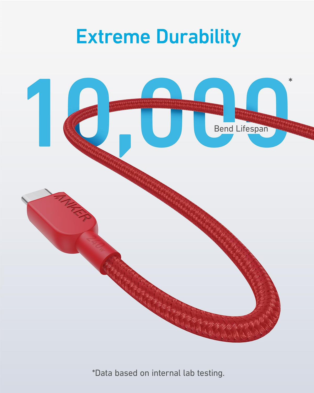 High-Powered 240W Charging: Experience Unparalleled Speed As You Power Up Your Macbook Pro 16'' To 42% Capacity Within 30 Minutes. | Charge Without Boundaries: From Macbook To Ipad, Samsung Phones, And Beyond, This Anker Usb-C Cable Offers A Charging Solution That Suits A Diverse Range Of Devices. | Unbreakable Double Braided Nylon: Enjoy Rapid Charging And Exceptional Resilience With A 10,000-Bend Lifespan*, Built To Endure The Rigors Of Daily Use. | Secure Charging Guarantee: Charge With Peace Of Mind Using Our Usb-If Compliant Cable, Designed To Meet The Highest Safety Standards. | What You Get: Anker Usb-C To Usb-C Cable (10 Ft, 2Pack, 240W, Braided), Welcome Guide, Our 24-Month Worry-Free Warranty, And Friendly Customer Service.