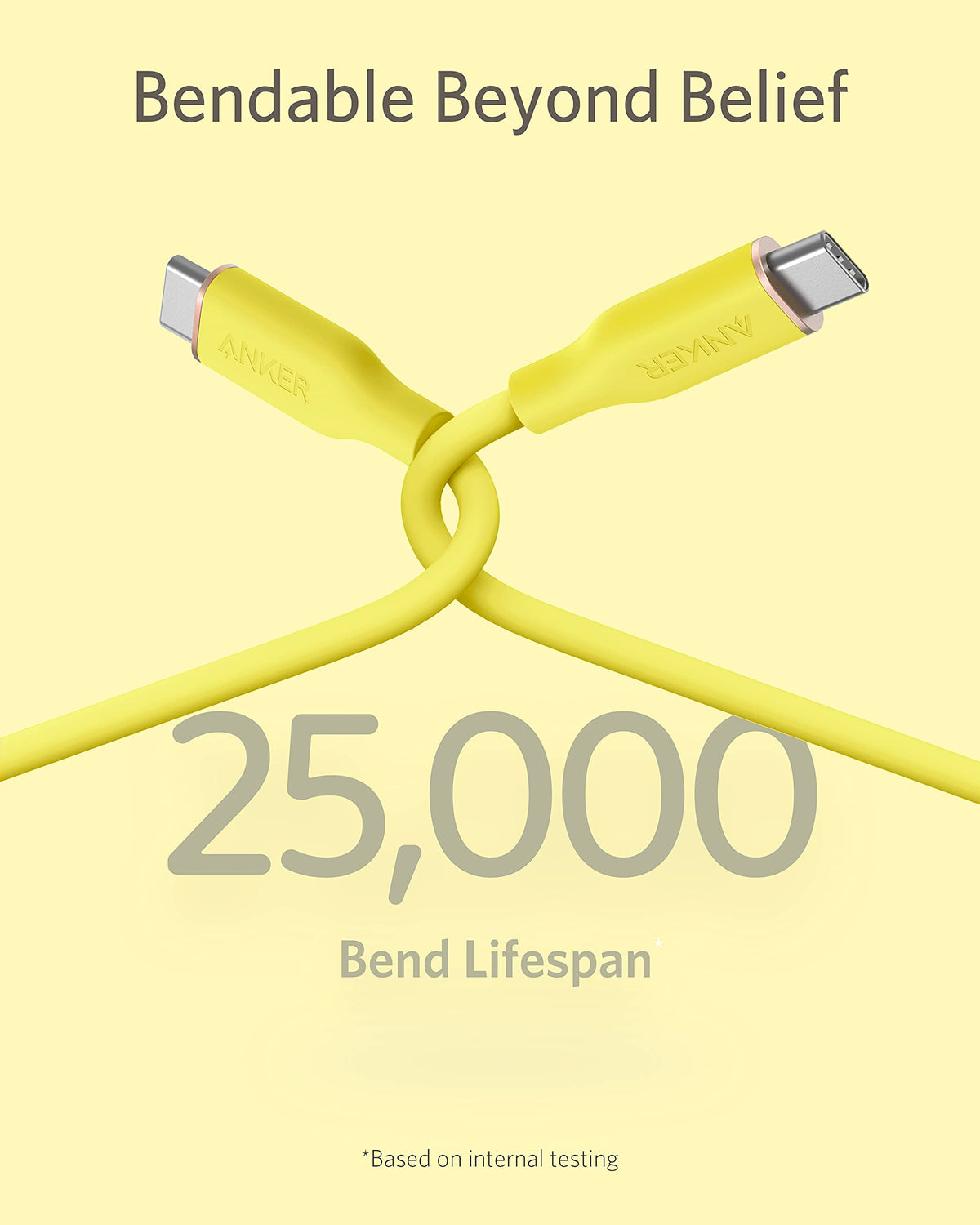 Q: Is this cable durable for everyday use?A: Yes, the Anker USB C Cable features an enormous durability with a service life of over 25,000 bends and strains, making it ideal for everyday use.