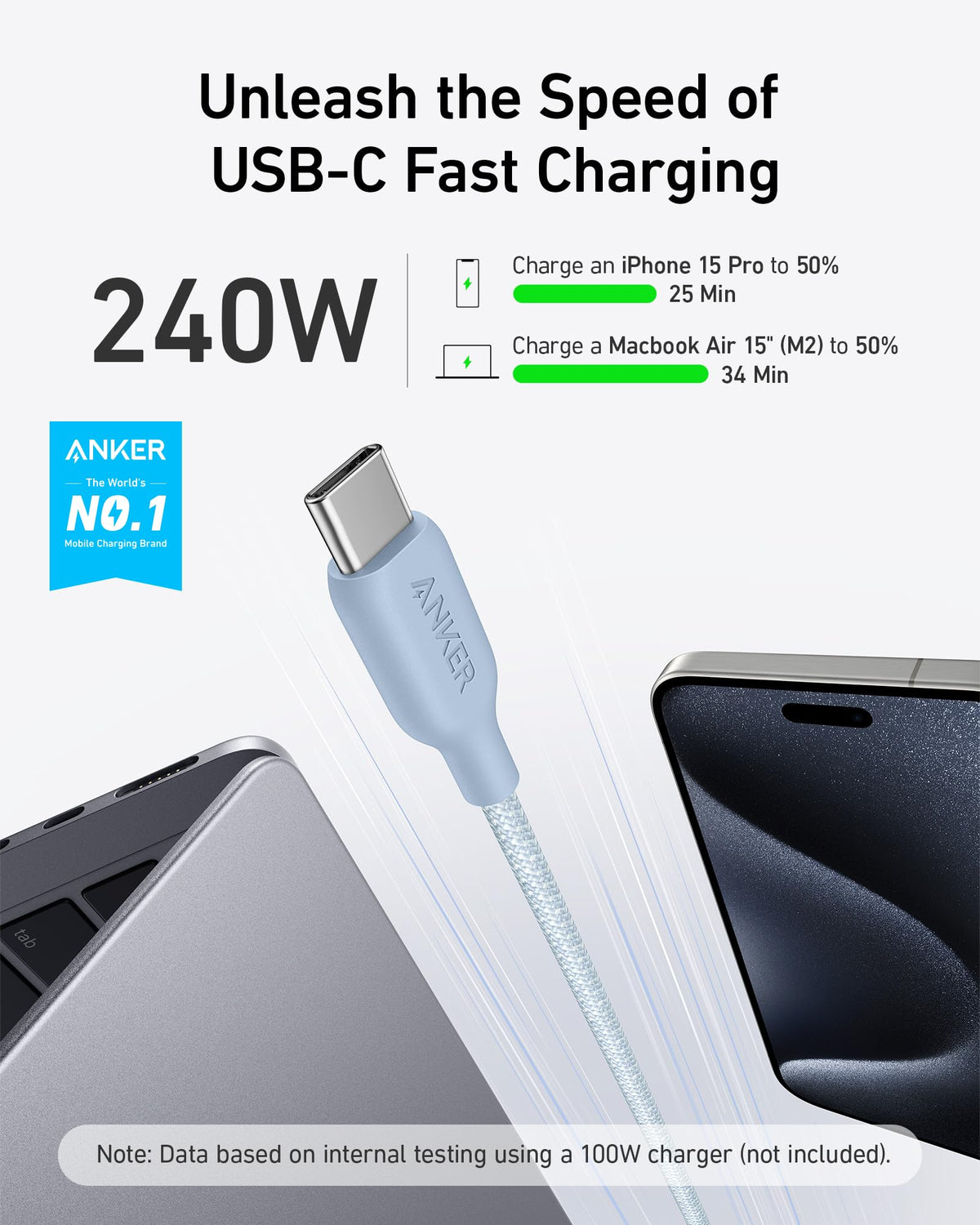 Anker Usb C To Usb C Cable (240W, 6 Ft), Bio Braided Usb C Charger Cable, Fast Charge For Macbook Pro 2020, Ipad Pro 2020, Ipad