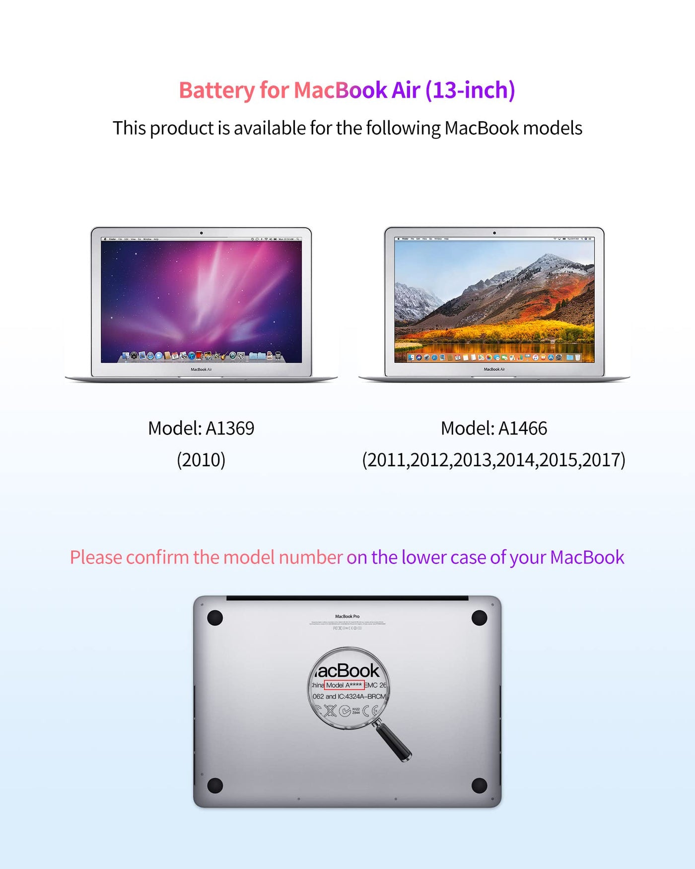 Asmark Battery Replacement For Macbook Air A1466(2017,2015,2014,2013,2012) A1369(2010,2011) 13 Inch A1377/A1405/A1496 Battery
