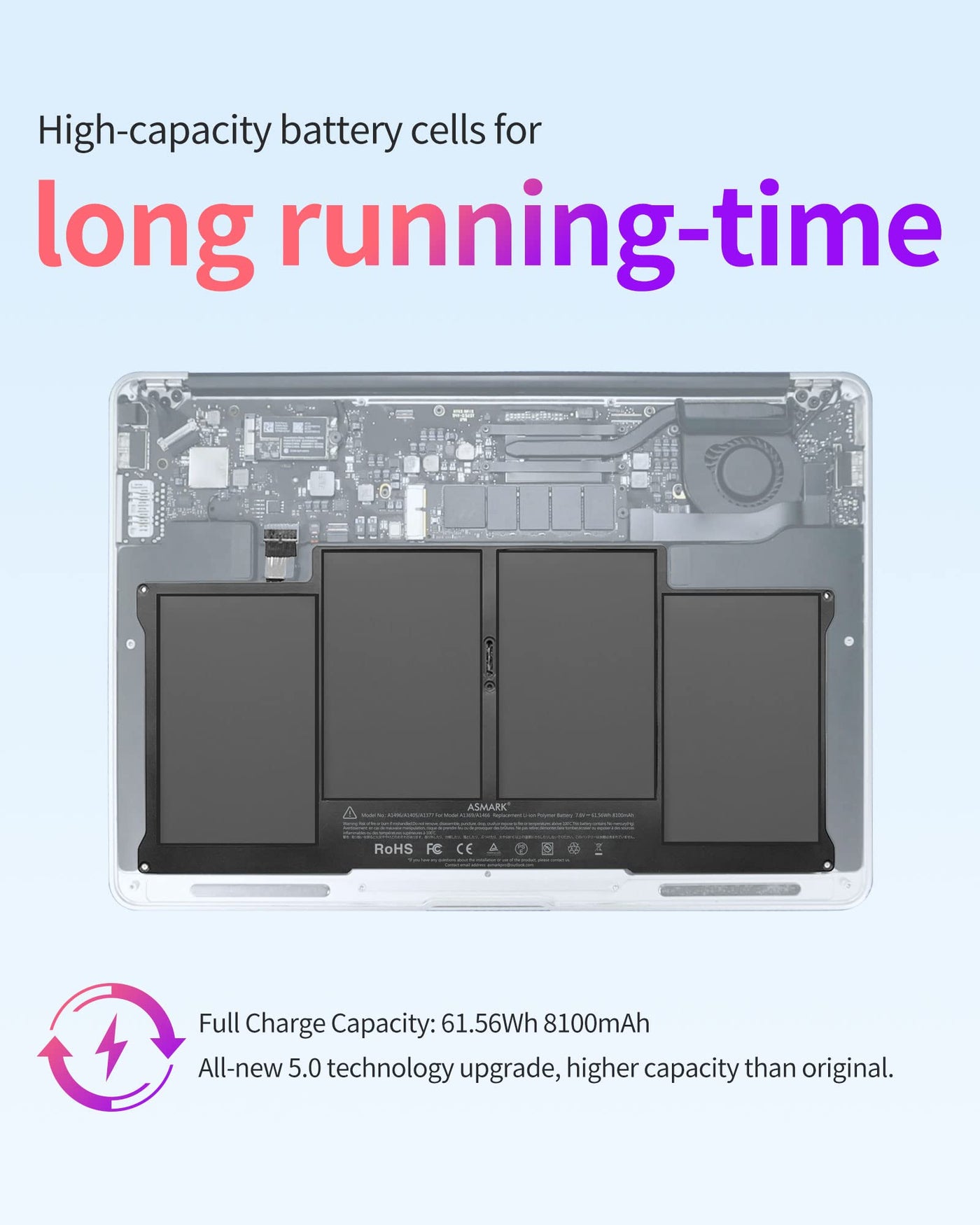 Thank You For Choosing Asmark Batteries.Asmark Is A Leading High-Tech Company That Has Specialized In High-Capacity, High-Quality Professional&Nbsp;Macbook Batteries, And Laptop Batteries For Over 13 Years.Battery Model: A1377 A1496 A1405Capacity: 8100Mah&Nbsp;61.56Wh&Nbsp;&Nbsp;Voltage: 7.6Vcompatible Macbook Model: A1369 A1466Macbook Air ''Core 2 Duo'' 1.86 13'' (Late 2010) Emc 2392 Mc503Ll/A*Macbook Air ''Core 2 Duo'' 2.13 13'' (Late 2010) Emc 2392 Mc905Ll/Amacbook Air ''Core I5'' 1.7 13'' (Mid-2011)&Nbsp;&Nbsp;&Nbsp;&Nbsp;&Nbsp;&Nbsp;&Nbsp;Emc 2469 Mc965Ll/A*Macbook Air ''Core I7'' 1.8 13'' (Mid-2011)&Nbsp;&Nbsp;&Nbsp;&Nbsp;&Nbsp;&Nbsp;&Nbsp;Emc 2469 Md226Ll/Amacbook Air ''Core I5'' 1.6 13'' (Edu Only)&Nbsp;&Nbsp;&Nbsp;&Nbsp;&Nbsp;&Nbsp;&Nbsp;Emc 2469 Md508Ll/A*Macbook Air ''Core I5'' 1.7 13'' (Edu Only)&Nbsp;&Nbsp;&Nbsp;&Nbsp;&Nbsp;&Nbsp;&Nbsp;Emc 2559 Md628Ll/A*Macbook Air ''Core I5'' 1.8 13'' (Mid-2012)&Nbsp;&Nbsp;&Nbsp;&Nbsp;&Nbsp;&Nbsp;&Nbsp;Emc 2559 Md231Ll/Amacbook Air ''Core I7'' 2.0 13'' (Mid-2012)&Nbsp;&Nbsp;&Nbsp;&Nbsp;&Nbsp;&Nbsp;&Nbsp;Emc 2559 Md846Ll/Amacbook Air ''Core I5'' 1.3 13'' (Mid-2013)&Nbsp;&Nbsp;&Nbsp;&Nbsp;&Nbsp;&Nbsp;&Nbsp;Emc 2632 Md760Ll/A*Macbook Air ''Core I7'' 1.7 13'' (Mid-2013)&Nbsp;&Nbsp;&Nbsp;&Nbsp;&Nbsp;&Nbsp;&Nbsp;Emc 2632 Bto/Ctomacbook Air ''Core I5'' 1.4 13'' (Early 2014)&Nbsp;&Nbsp;&Nbsp;&Nbsp;&Nbsp;Emc 2632 Md760Ll/B*Macbook Air ''Core I7'' 1.7 13'' (Early 2014)&Nbsp;&Nbsp;&Nbsp;&Nbsp;&Nbsp;Emc 2632 Mf068Ll/Amacbook Air ''Core I5'' 1.6 13'' (Early 2015)&Nbsp;&Nbsp;&Nbsp;&Nbsp;&Nbsp;Emc 2925 Mjve2Ll/A*Macbook Air ''Core I7'' 2.2 13'' (Early 2015)&Nbsp;&Nbsp;&Nbsp;&Nbsp;&Nbsp;Emc 2925 Bto/Ctomacbook Air ''Core I5'' 1.8 13'' (2017*)&Nbsp;&Nbsp;&Nbsp;&Nbsp;&Nbsp;&Nbsp;&Nbsp;&Nbsp;&Nbsp;Emc 3178 Mqd32Ll/A*Macbook Air ''Core I7'' 2.2 13'' (2017*)&Nbsp;&Nbsp;&Nbsp;&Nbsp;&Nbsp;&Nbsp;&Nbsp;&Nbsp;&Nbsp;Emc 3178 Z0Uu1Ll/A*Model Identifier:&Nbsp;Macbookair3,2&Nbsp;Macbookair4,2&Nbsp;Macbookair5,2&Nbsp;Macbookair6,2&Nbsp;Macbookair7,2
