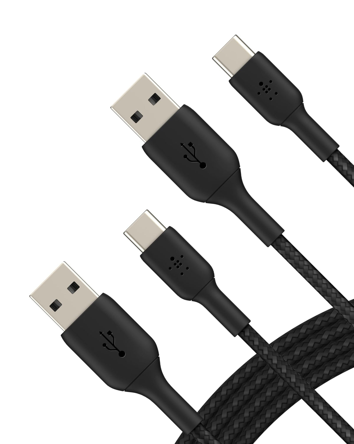 Unlock the power of quality charging with our BoostCharge Braided USB-C to USB-A Cables. Designed with a double-braided exterior, these silicone charging cables are up to 10X more durable than ordinary cables,* giving you a long-lasting and flexible charging solution that won�t get tangled or frayed. These cables have undergone rigorous testing to withstand over 10,000 bends, ensuring longevity and reliability for all your charging needs. Whether you're at home, in your car, or on the go, these versatile cables provide seamless syncing of music, photos, and data while keeping your devices powered up. Belkin is an established accessories market leader creating high-quality, innovative tech solutions for 40 years. *Withstands up to 10,000 bends based on internal laboratory test results, compared with 1,000 bends for an ordinary PVC cable. Specifications: Cable Length: 3.3ft / 1M USB-IF certified 15W 10,000+ bends Compatibility: Apple iPhone 16, iPhone 16 Plus, iPhone 16 Pro, iPhone 16 Pro Max, iPhone 16e, iPhone 15, iPhone 15 Plus, iPhone 15 Pro, iPhone 15 Pro Max, Google Pixel 9, Note, Samsung Galaxy S25 Series, iPad Pro, USB-C tablets, Earbuds, and much more 100% plastic-free packaging 2-year Coverage Package Includes: (2) 3.3ft BoostCharge Braided USB-C to USB-A cables