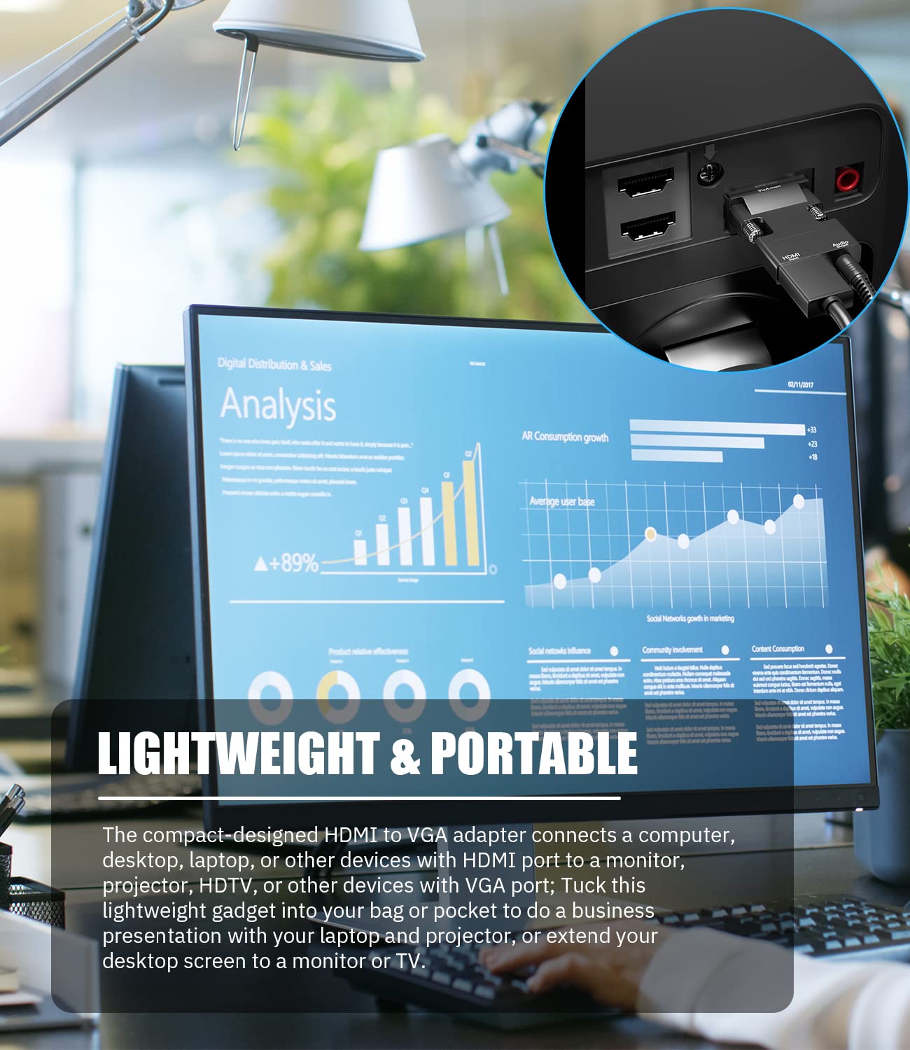 Berlat Hdmi To Vga Adapter Converter, Audio Output Computer Set Top Box Connector Dongle For Laptop, Pc, Monitor, Projector, Hdtv, Chromebook, Roku, Xbox 3.5Mm Stereo Cable Included