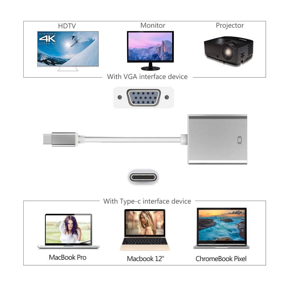 Full Hd Output: This Usb C To Vga Adapter Support Resolutions Up To 1920X1200 Or 1080P@60Hz, Including 1600X1200P, 1280X1024P, 1280X720P.