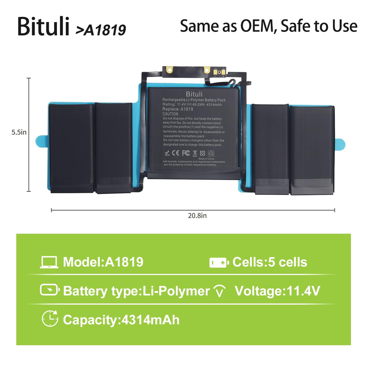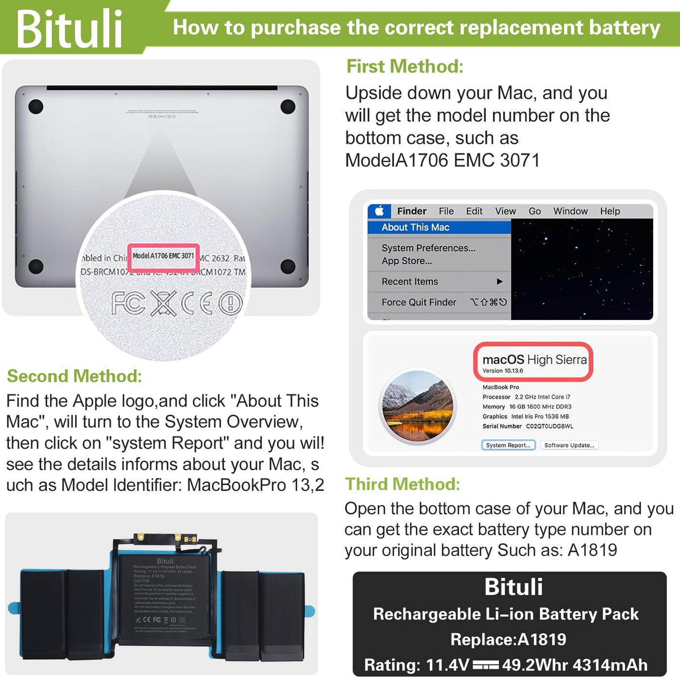 Bituli A1706 A1819 Battery Replacement Laptop Battery Compatible With Mac Book Pro 13 Inch [Late 2016 Year, Mid 2017 Year], Emc