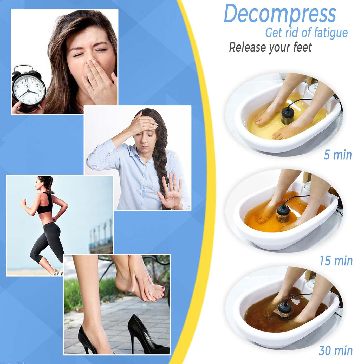 The Foot Is The Second Heart Of The Person, And Health Care Begins With The Foot. Boee Ionic Detox Machine Utilizing The Characteristics Of Water To Split It Into Positive And Negative Ion, And The Negative Ions Pull Out The Toxin From The Your Feet. Reduce The Stress Of Your Whole Body, Regain Your Vitality And Healthy. Easy To Operation: 1. Connect The Foot Spa Machine, Add Some Water And Salt Into The Tub, Then Put The Array Into The Water. 2. Press The On/Off Button To Start The Whole Body Purification Travel. 3. The Default Time Is 30 Times, The One Light Stands For 5 Mins. You Will Confused: 1.Without Or With Feet In , The Water Color Will Change. This Is A Normal Things. Through The Electrolysis Of Water, Creates Ions In The Water. When There Are No Feet In The Water, The Ions Neutralize What Is In The Foot Bath. However, The Reacting Will More Stronger And The Color Will More Darker When Put The Feet In. 2. When Connect The Power, The Light Will Be Flashed, Press The On/Off Button, It Will Start To Work. After Finished, The Indictor Lights Will Keep Light. The Foot Is The Second Heart Of The Person, And Health Care Begins With The Foot. So The Foot Is Important For Us. The 10 Independence Rolles, Soft And Smooth, Gently Glide Your Feet To Release Tension Through Deep Tissue Massage. 22+22 Pinpoint Massage, Stimulates Blood Circulation And Relieves Pain. Anti-Slip Design, Make The Massage Roller Suitable For Any Ground. You Can Put It On The Foot Tub When Doing Detox Foot Spa, It Is A Awesome Experience.