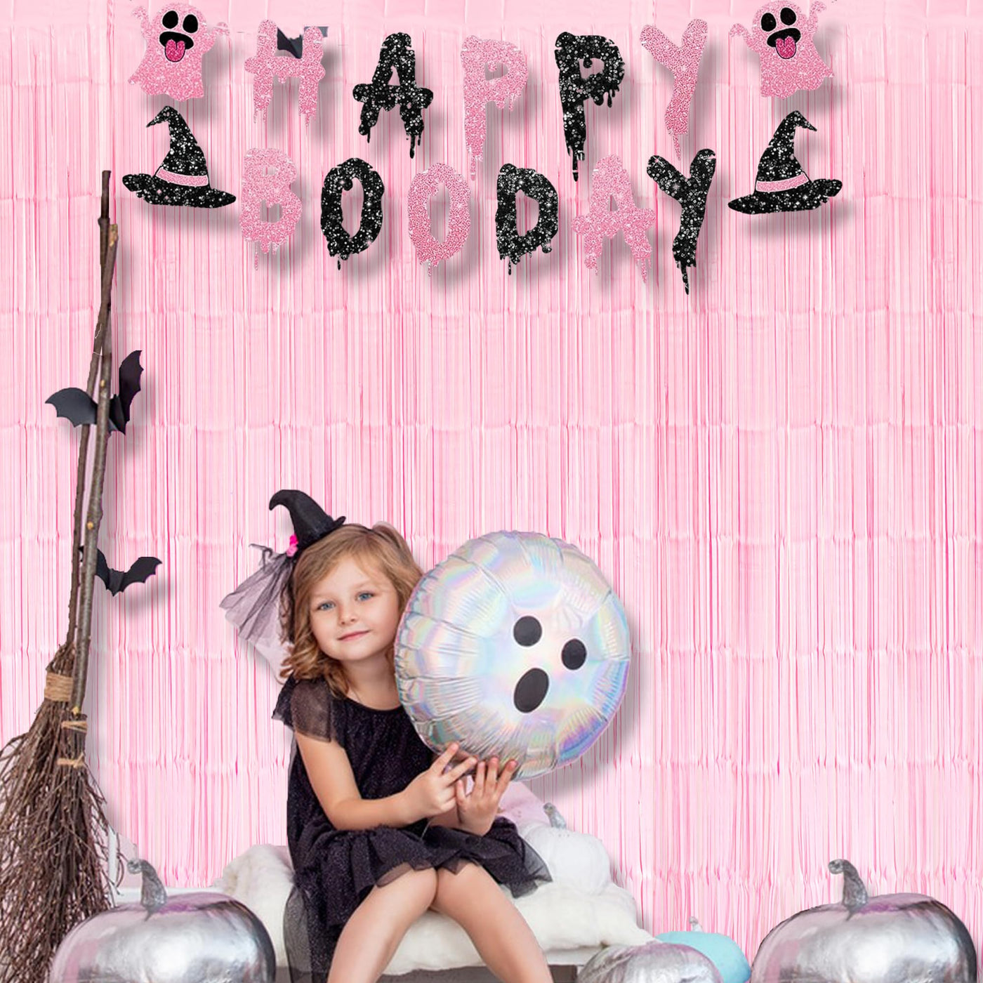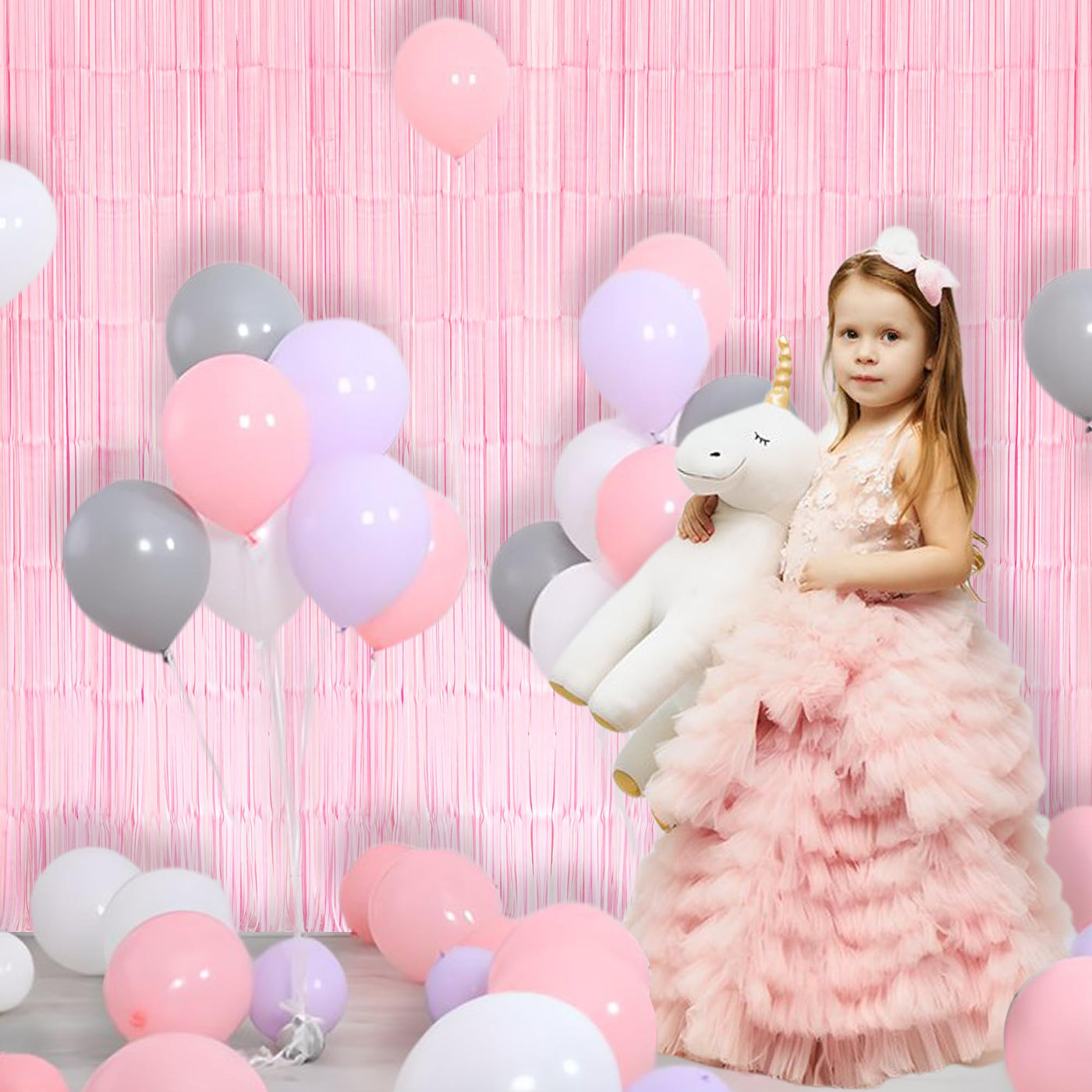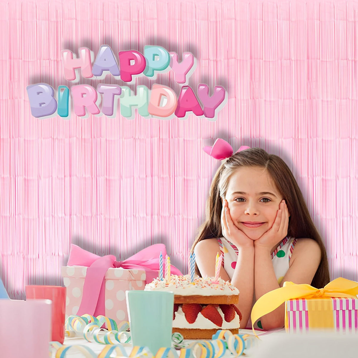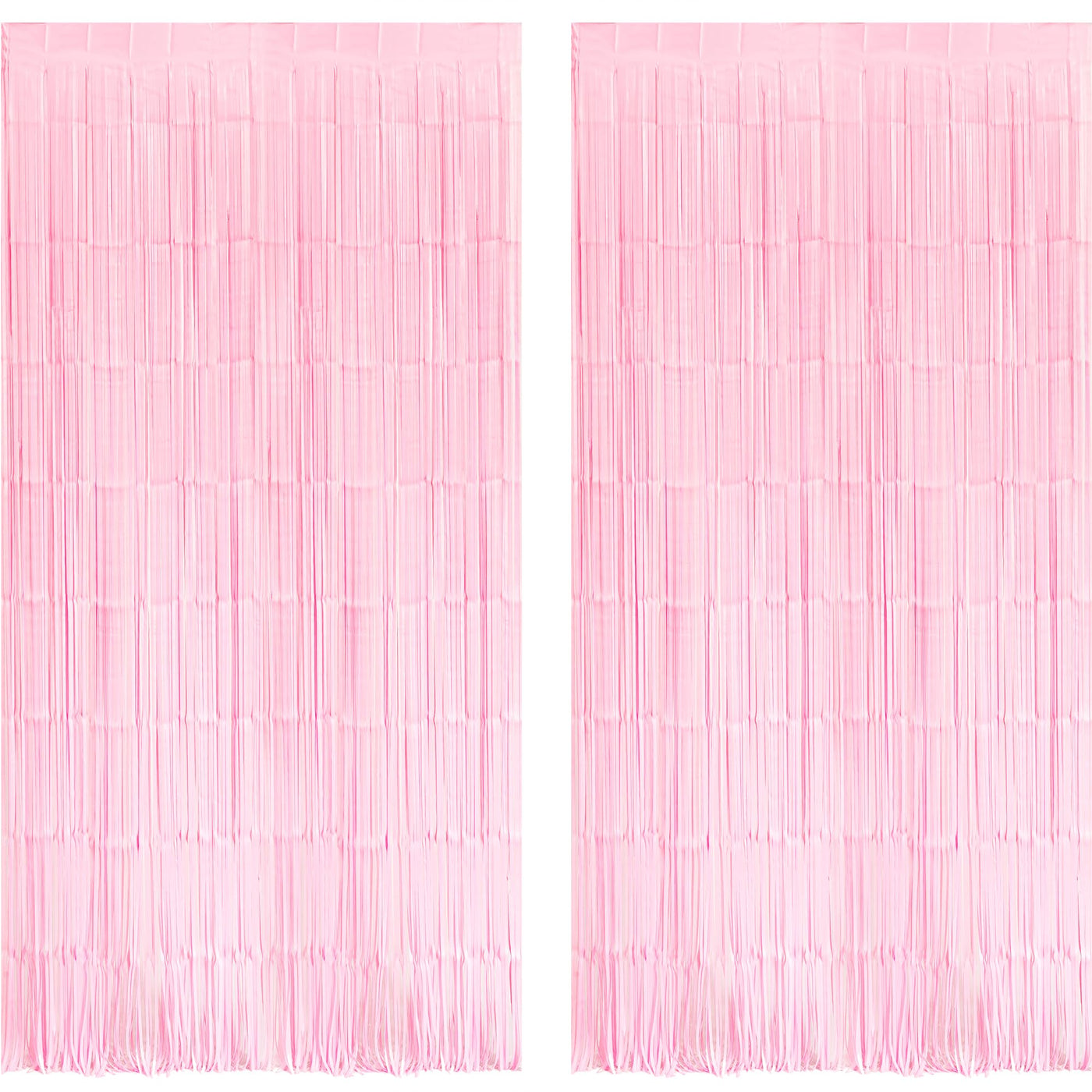 Braveshine Macaron Pink Foil Fringe Curtains Tinsel Backdrop Photo Booth Streamer Metallic Party Supplies For Girls' Pastel Bi