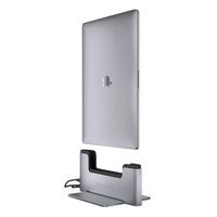 Quickly Connect Peripherals: Form-Fitting For A Seamless Integration And Instant Connection With All Of Your Devices, Including Dual External Displays. For The Macbook Pro 16'' 2019, 15'', 13'', Macbook Air 13''. Macbook Not Included. | Space Saver: Perfect For Your Office Desktop, Home Media Setup, Or Conference Room. The Vertical Stand Is Compatible With Macbook Pro 15'', With Integrated Thunderbolt Connectivity Helps Save Space On Your Desktop & Gives You Instant Connectivity To All Of Your Devices. | Instant Connectivity: One-Handed Docking For The Macbook Pro 15'', That Instantly Connects To Your Displays And Other Devices. No Need To Plug In Individual Cables! | Cooling System: Intake And Exhaust Vents Allow Additional Airflow To And From The Macbook Pro Cooling System. Efficient Heat Management Keeps Things Cooler In Clamshell Mode Even Under The Heaviest Processing Loads. | Premium Design: Space Grey, Solid Metal Chassis Blends Seamlessly With Macbook Pro Creating A More Refined Desktop Experience And Home For Your Macbook. Featuring Refined Spring Force For Sleeve Movement, Improved Connection And Port Protection For Your Macbook Pro.