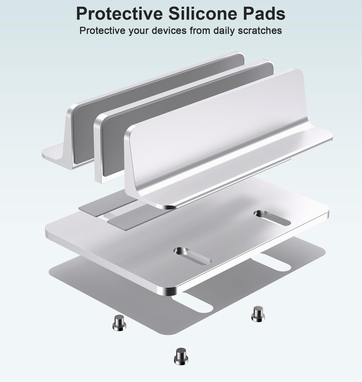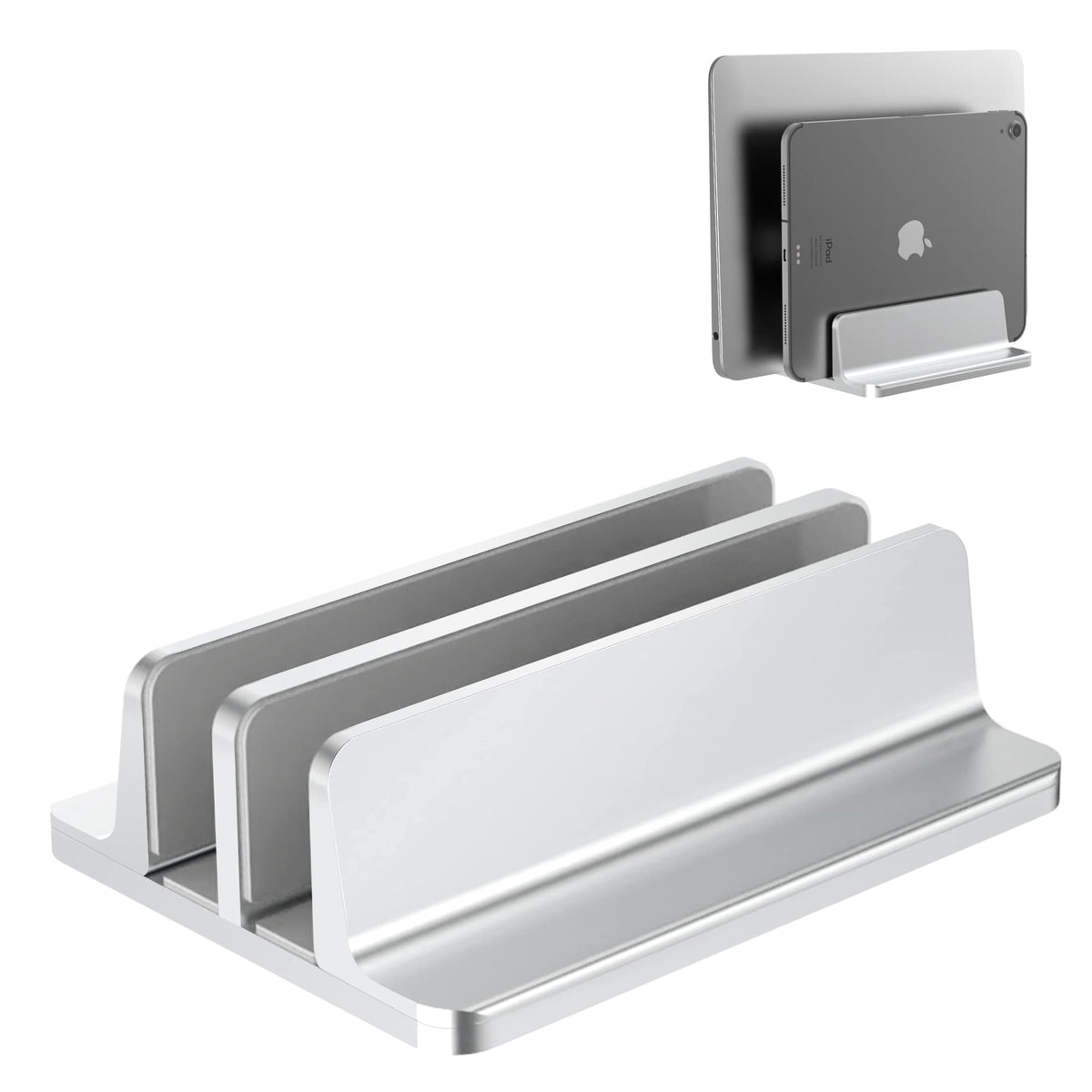 Bull Tech New Vertical Laptop Stand, Adjustable 2 Slot Aluminum Desktop Holde(Up To 17.3 Inch), Fits All Macbook/Microsoft Surface/Hp/Dell/Chromebook/Ipad And Gaming Laptops (Silver)