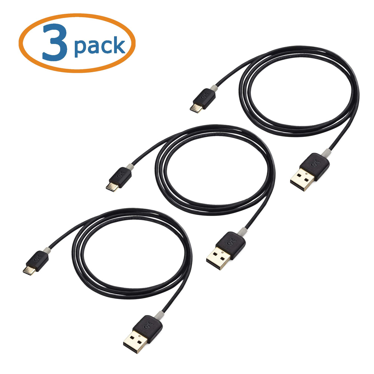 Cable Matters 3 Pack USB to USB C Charging Cable 3.3 ft with 3A Fast Charging in Black for iPhone 16/15, Samsung Galaxy S23 Ultra, S23, S22, Note 20, LG G8, Google Pixel 7a, iPad Pro, Nintendo Switch