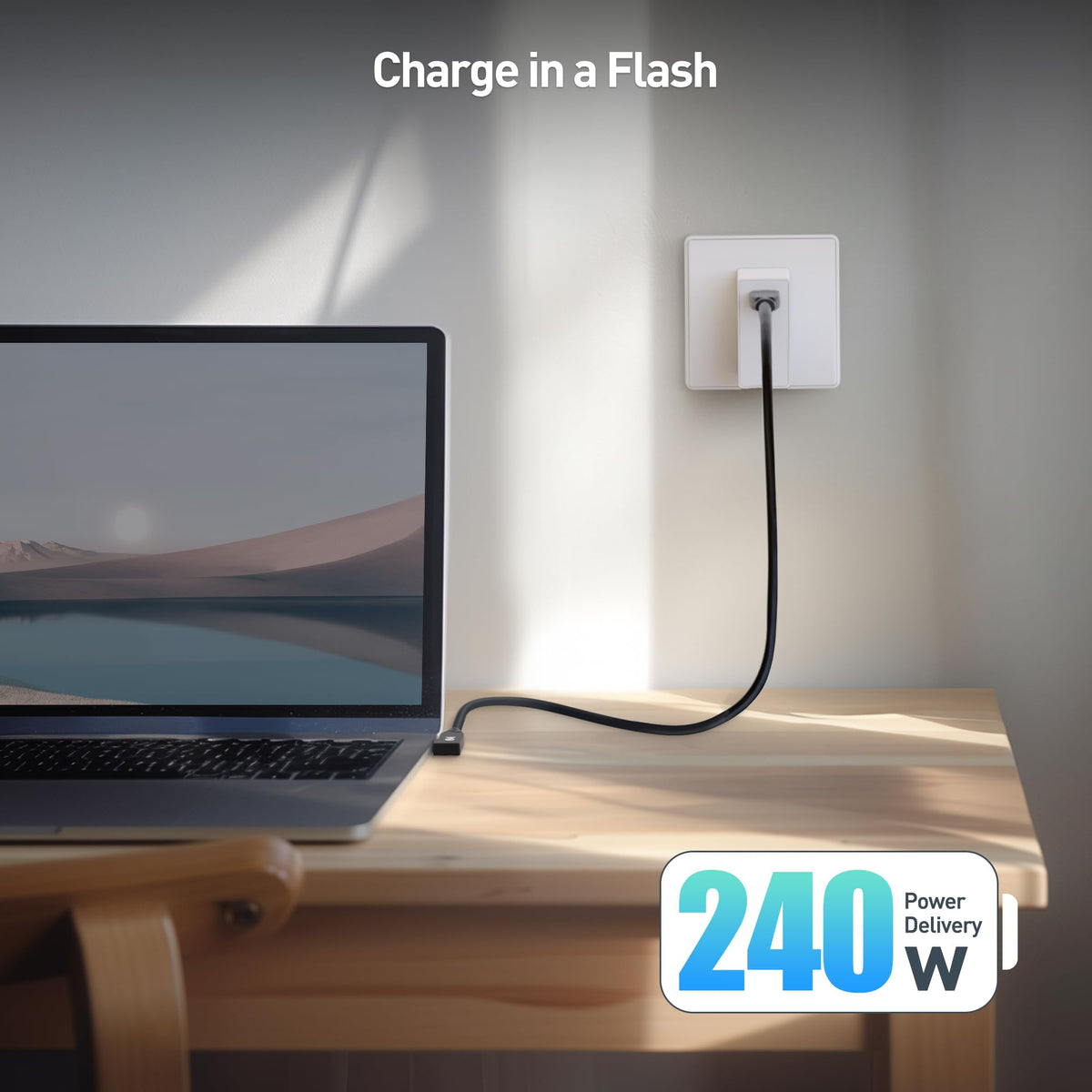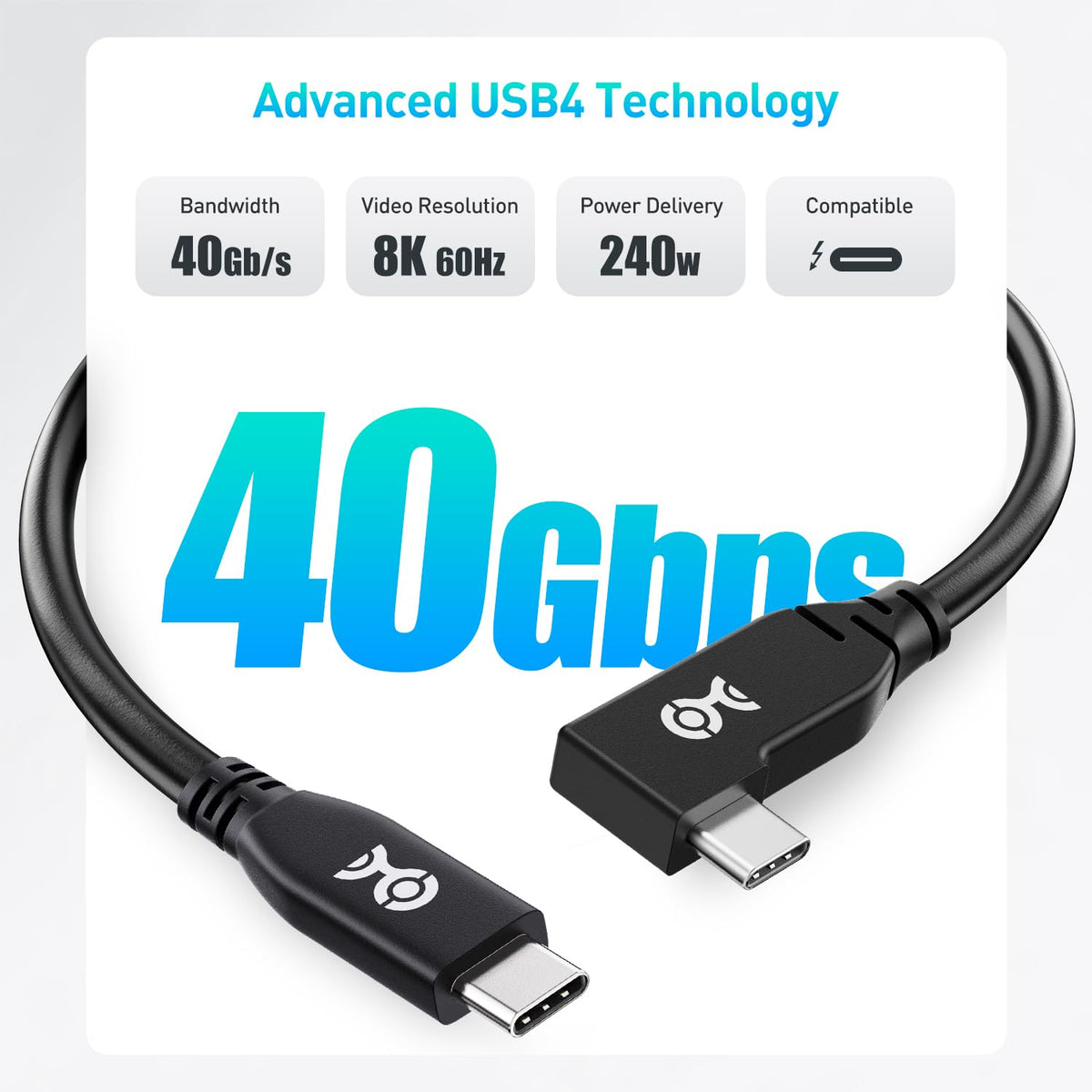 Cable Matters 40Gbps Right Angle USB 4 Cable 3.3 ft, Supports Up to [8K@60Hz / 4K@240Hz Video, 240W Charging, 40Gbps Data Transfer] USB4 Cable Right Angle, Compatible with Thunderbolt 4, MacBook, XPS