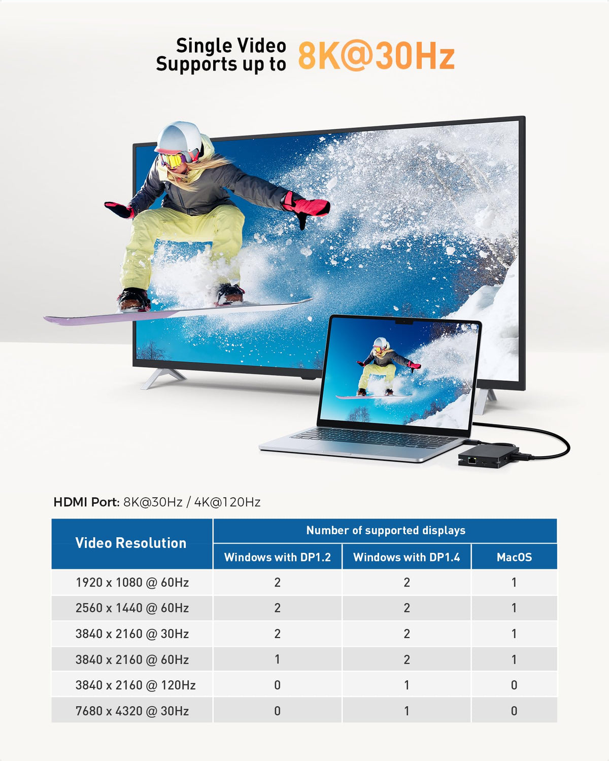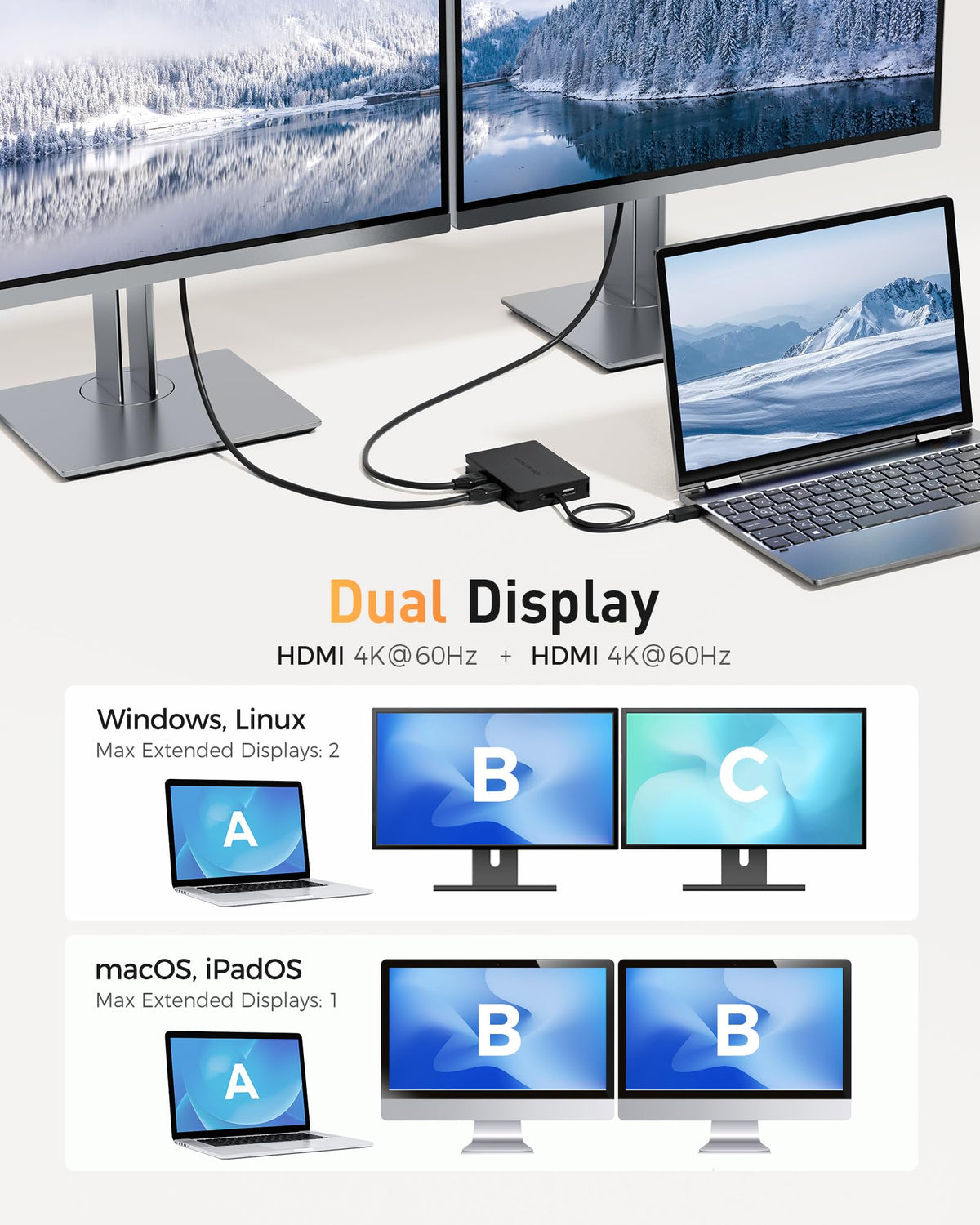 Cable Matters 8 in 1 Portable 40Gbps Dual HDMI USB4 Hub, USB 4 Dock with 2X 4K@60Hz or 1x 4K@120Hz / 8K@30Hz, 100W PD, Gigabit Ethernet, Compatible with Thunderbolt 4 (*macOS's Display Limitation)