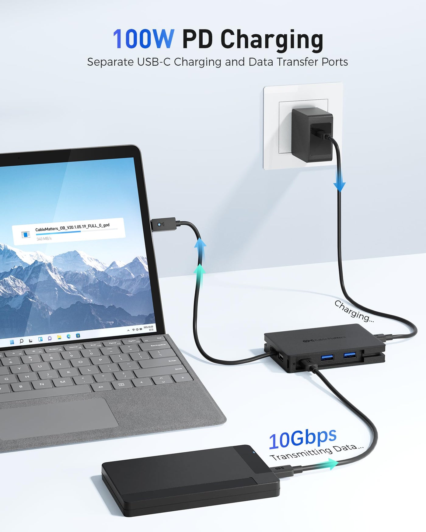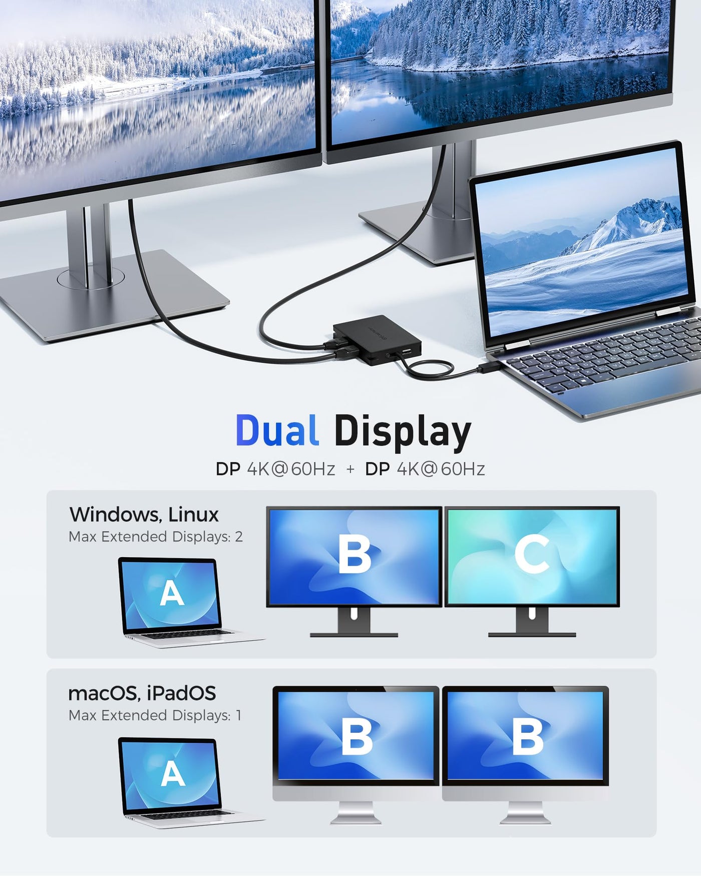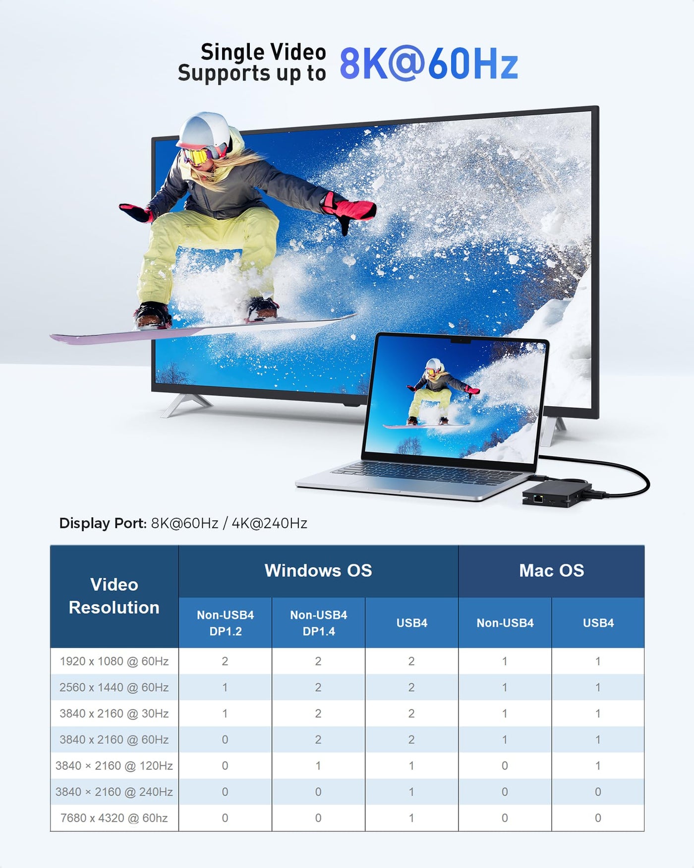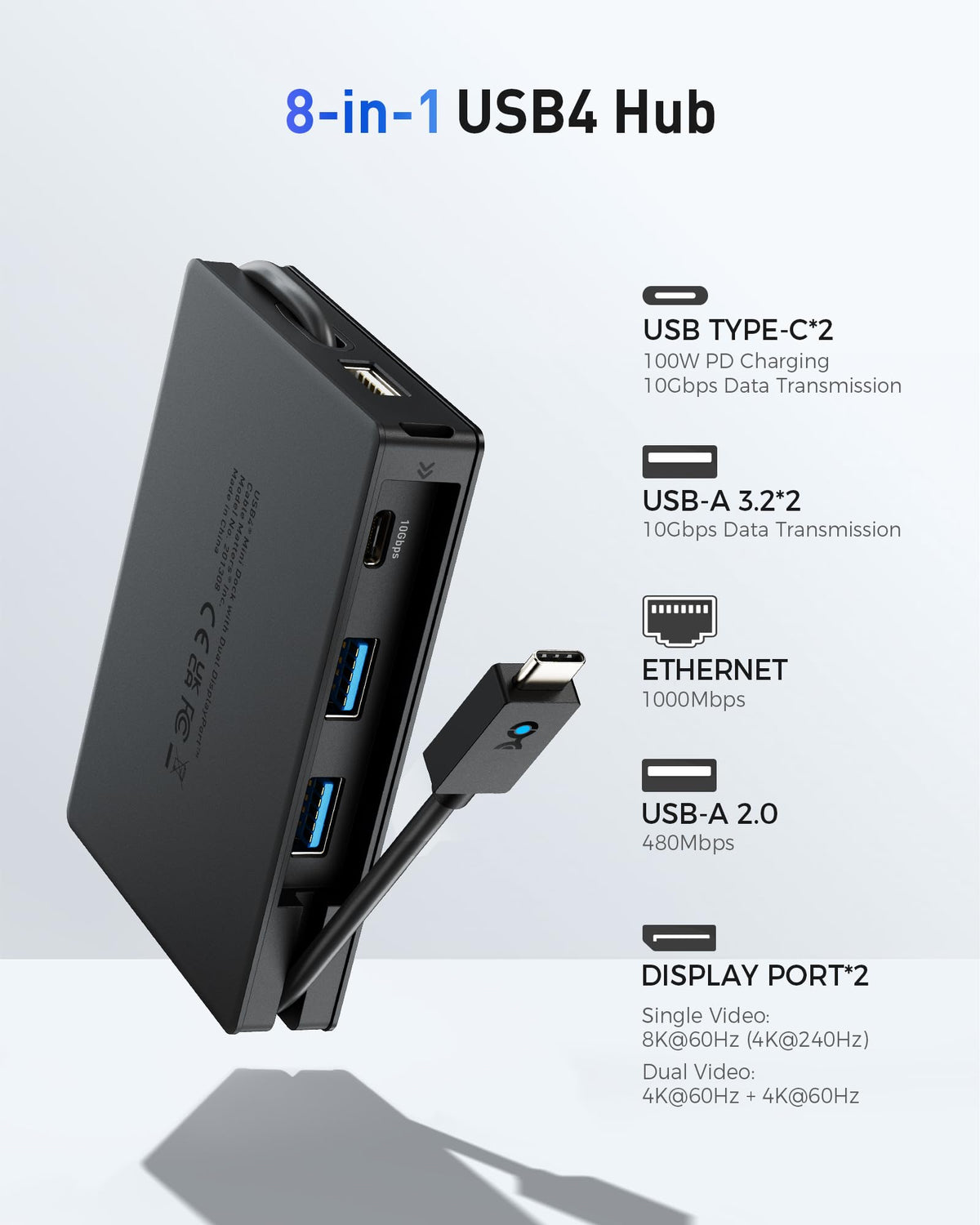 Cable Matters 8 in 1 Portable 40Gbps USB4 Hub (USB 4 Dock) Dual DisplayPort 4K@60Hz, Single DP 4K@240Hz/8K@60Hz, 100W PD, Gigabit Ethernet, Compatible with Thunderbolt 4 (*macOS's Display Limitation)