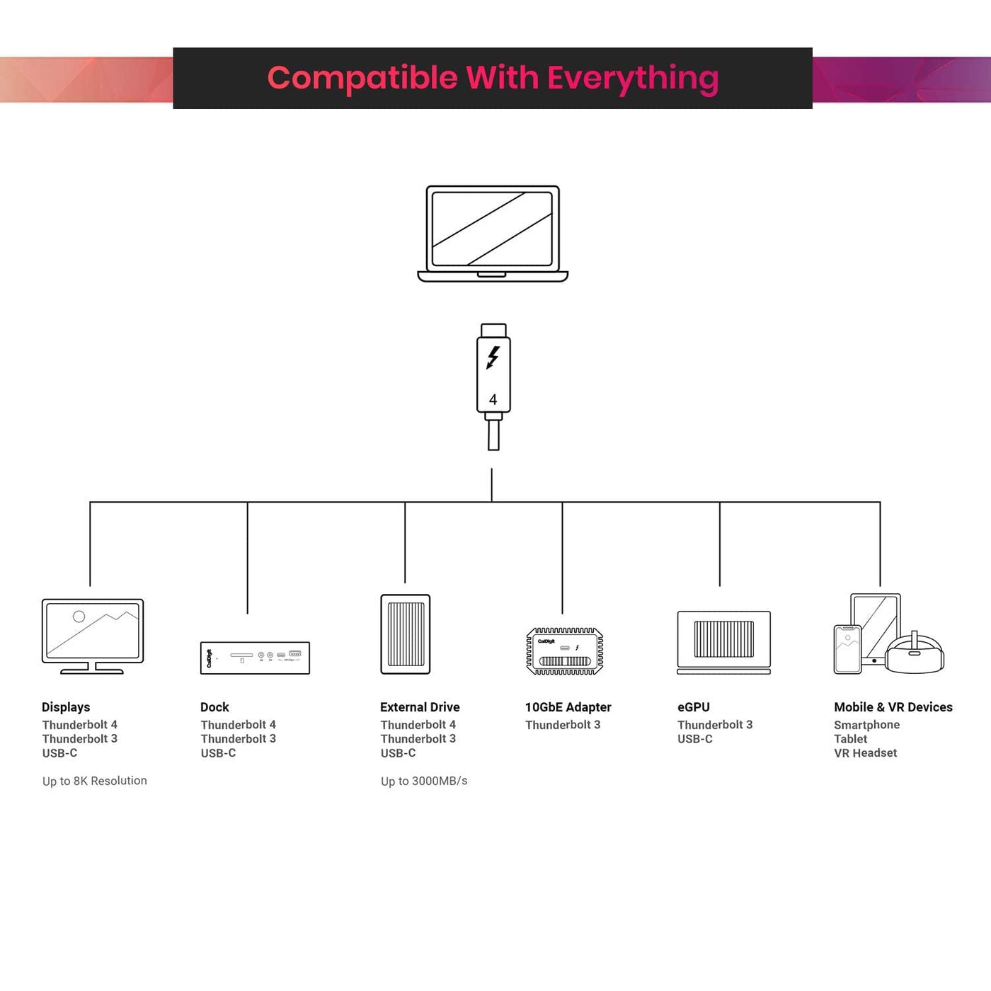 Caldigit Thunderbolt 4 Cable 40Gbps 100W Power Delivery, Compatible With Thunderbolt 3 & Usb Type C, Macbook Pro, Imac, Iphone 15 Max, Black (0.8 Meter 2.62 Feet, Thunderbolt 4 / Usb 4 Cable)