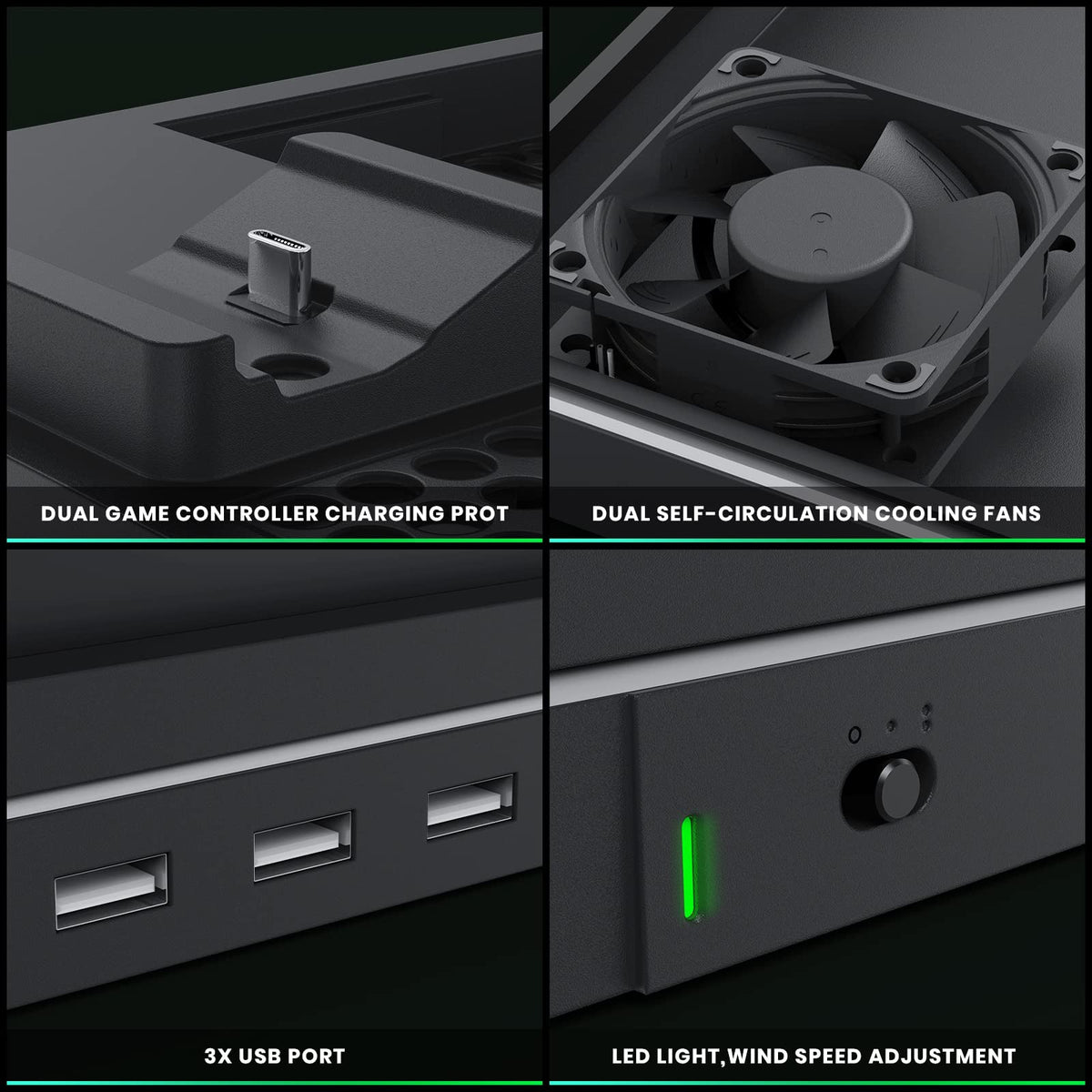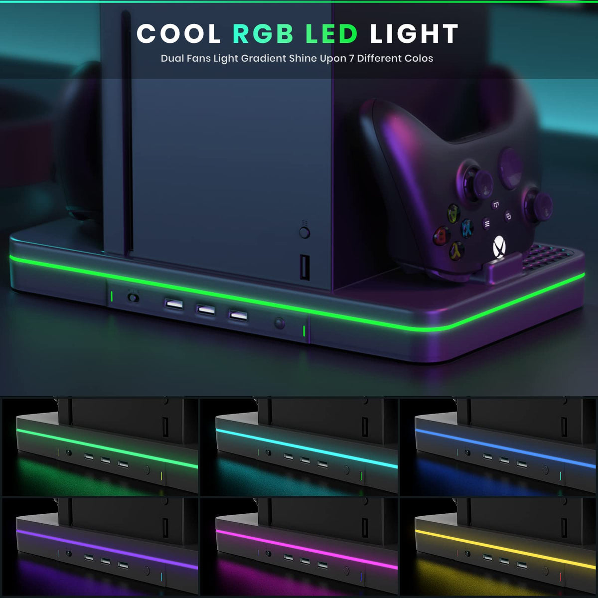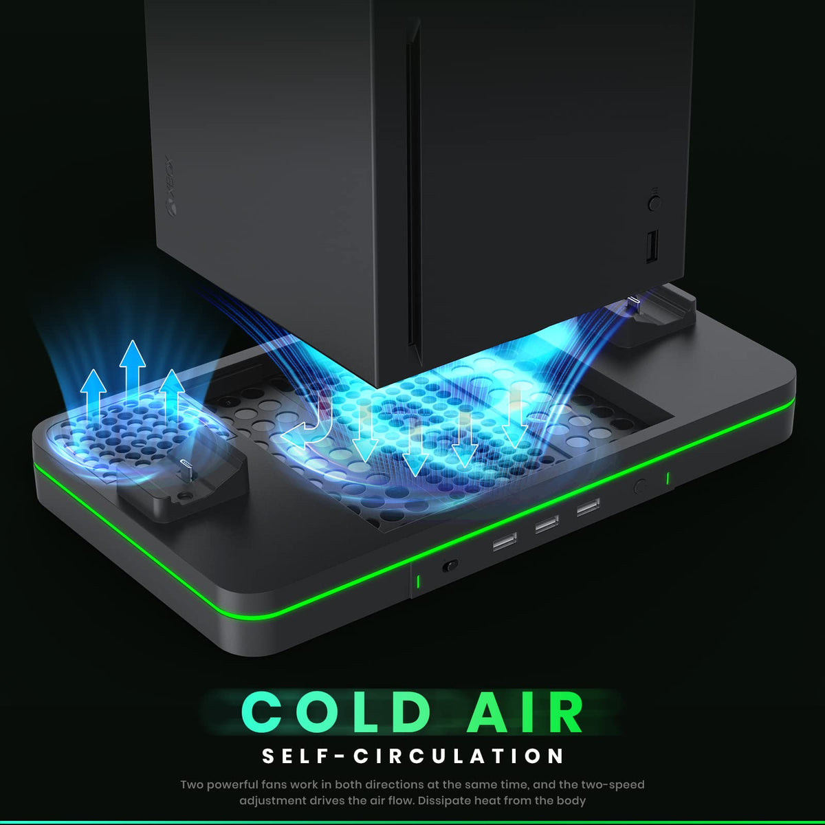 Codogoy Charging Stand With Cooling Fan,&Nbsp Vertical Stand Compatible With Xbox Series Xs Console And Controller, Vertical Dual Controller Charger Station Dock Accessories With 3 Usb Ports Power Switch Help You Power It On Off As You Need, Conveninent Cooling System For Xbox Series S3 Extra Usb Hub Ports, Both Can Power Your Controller Charger For Xbox Series S, And One Of Them Can Use As Data Transform Interface, Such As Connect Your Controller Or Game Memory Card Perfect Match The Style And Performance Of The Console For Xbox Series S, Look As Oneeasy To Install, No Screw And No Adhesive Needed, Only Put The Console On The Cooling Fan And Standincluded 2 Charging Docks, Which Can Charge And Storage 2 Series Xs Controllers At The Same Timethe Indicator On The Front Of The Station Which Indicates When The Controllers Are Fully Chargedyou Can Get Your Cooling Fan, Charging Dock, All In This All In One Stand Whats More, You Donat Need Any Cords To Use This The Fan Plugs Directly Into The Usb Slot Into The Console And Then From The Fan Another Usb Plugs Into The Stand And Charges It So Plug And Go And You Are All Donethis Is A Must Have If You Have The Series X Super Easy To Use Ideal Gift For Any Series X Gamer