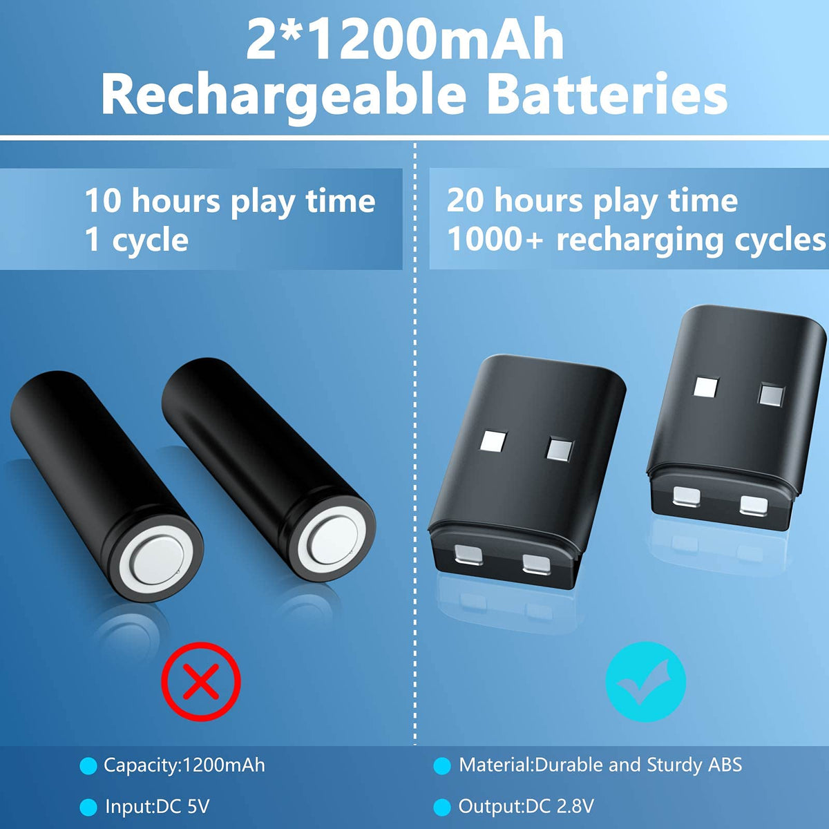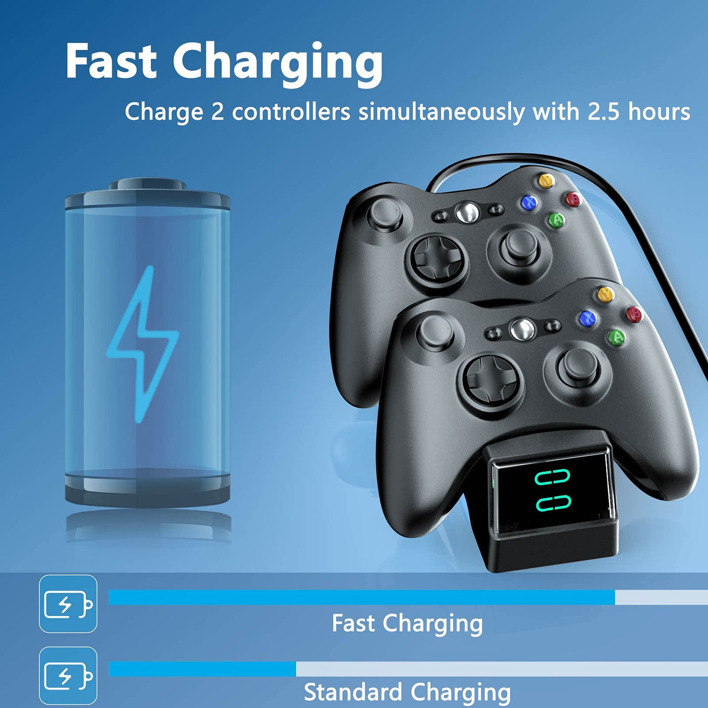 Specifications Input: Dc 5V--1000Ma Output: Dc 2.8V-3.3V 5V--500Ma(Each Port) Charging Time: 2.5 Hours Charge Cycles: >1000 Times Battery Information: 2*1200Mah Nimh Rechargeable Battery Packs Battery Life: Up To 30 Hours Of Play Timepackage Includes 1* Dual Charging Station For Xbox 360 Controller 1* Charging Cord Compatible With Charging Station 2* Battery Replacements For Xbox 360 Controller Note: It Is Not Compatible With Xbox Series And Xbox One Controllers